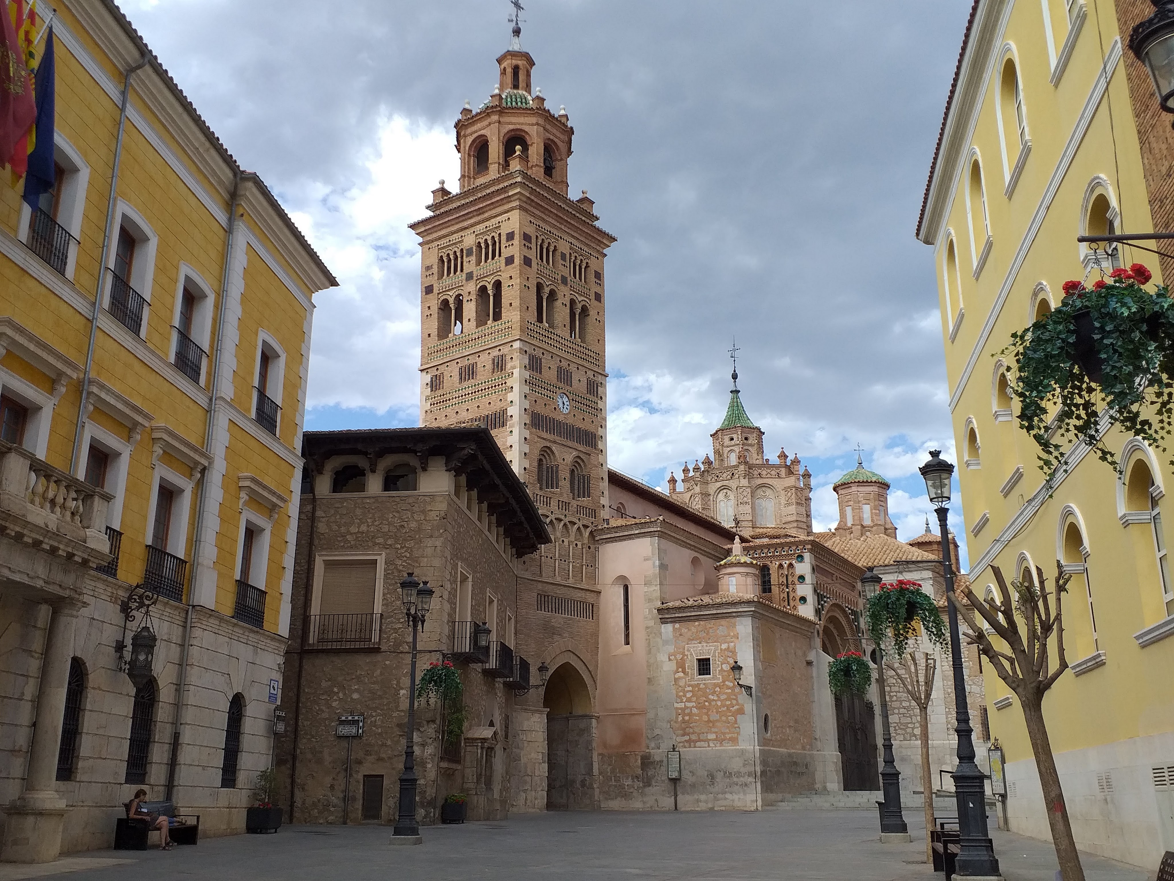 I arribem a Terol. Jo no hi havia estat mai i només havia sentit allò de «Teruel también existe» però m’ha sorprès la seva preciosa arquitectura mudèjar, la llegenda dels amants i les restes arqueològiques de dinosaures. Després de deixar la furgo a un pàrquing públic al costat de l’estació, i des d’allà mateix trobem la plaça de castanyers que ens porta a una escalinata espectacular. Visitem les petites esglésies, la catedral, les placetes, les frases al·legòriques als amants i, acabem fent un cafè a la Plaça del Torico, la més cèntrica i amb més ambient. Teruel és petit però molt bonic. Anem a dormir a una zona per a caravanes que hi ha davant els poliesportius, en front mateix de Dinópolis que és un parc temàtic. Hem tingut una nit d’ambient tranquil, si no hagués estat per la tempesta que ens ha caigut amb llamps, trons i una bona descarregada d’aigua.
