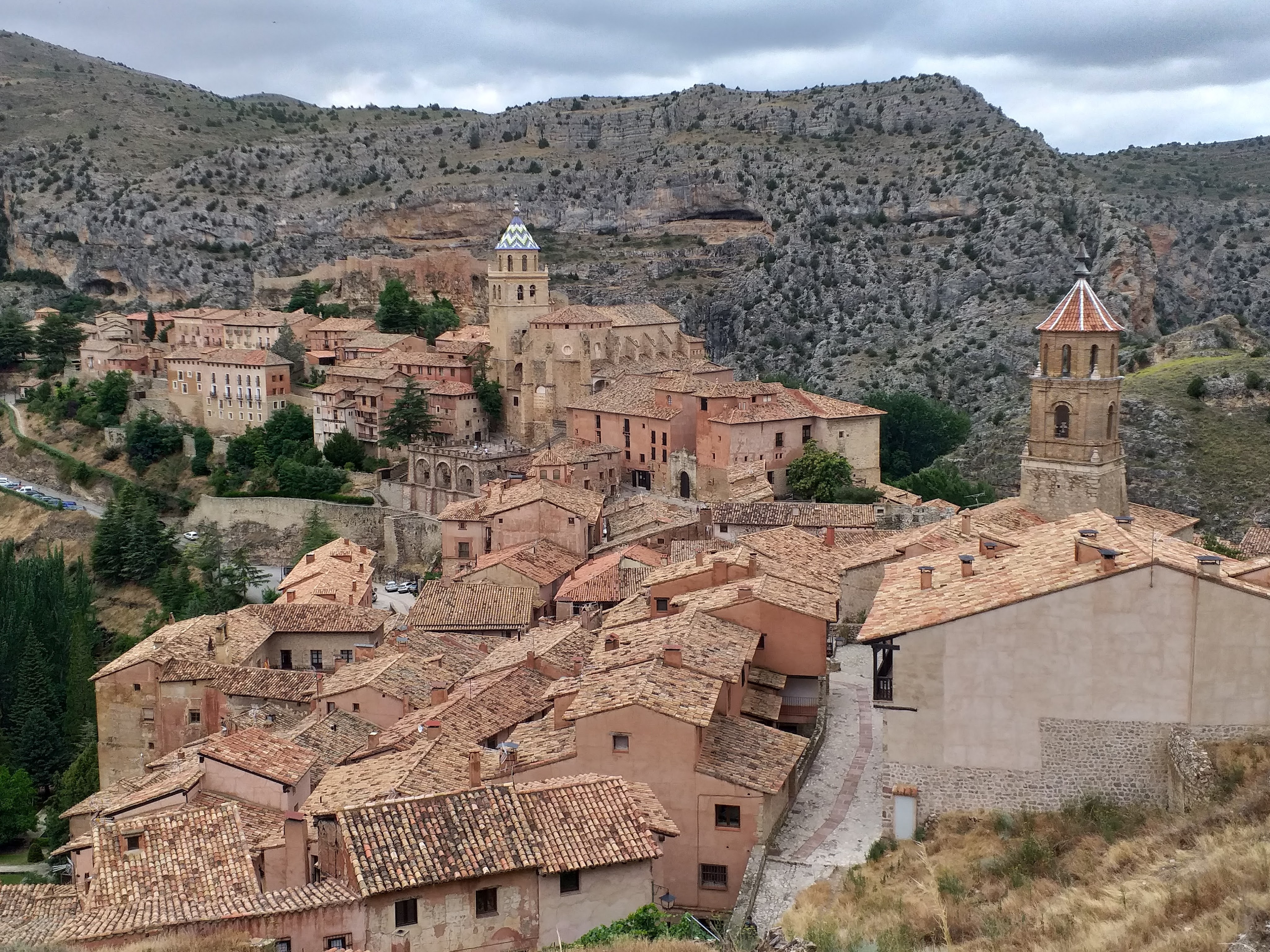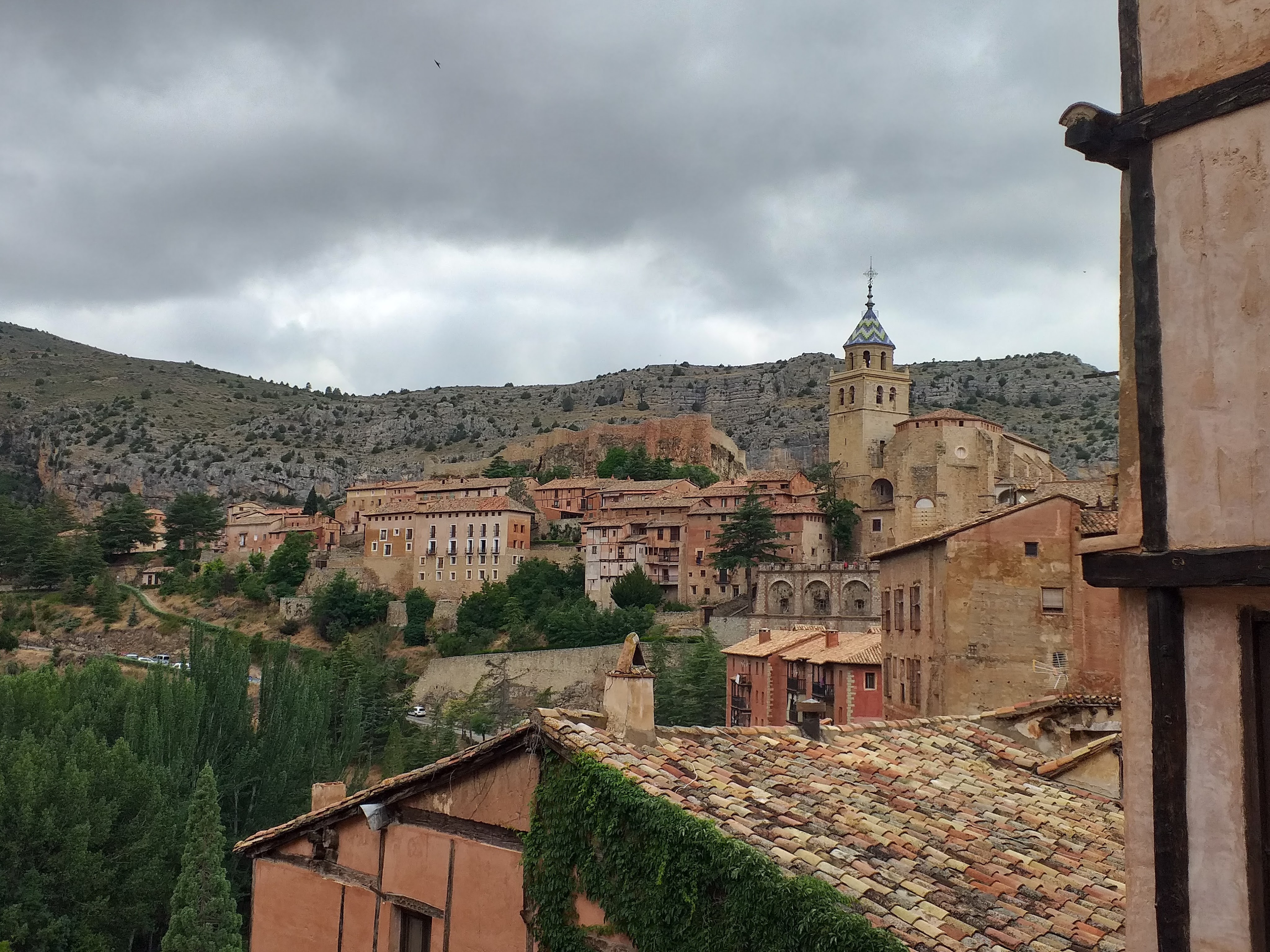Arribem a Albarracin i quedo gratament sorpresa de lo ben cuidat que està tot. És un conjunt de casetes de pedra roja enfilades a la muntanya i al fons la muralla. Fem la visita complerta passejant amb calma: la Casa Azagra (li diuen la casa blava), l’Ajuntament, la Catedral, la plaça Major, la pujada a les Muralles i ens perdem pels seus carrerons impossibles. Avui no fa calor després de la tempesta d’aquesta nit. Dinem molt be al restaurant Senyoria de Albarracin, un ternasco i un cap de be, com el cuinava la meva mare.