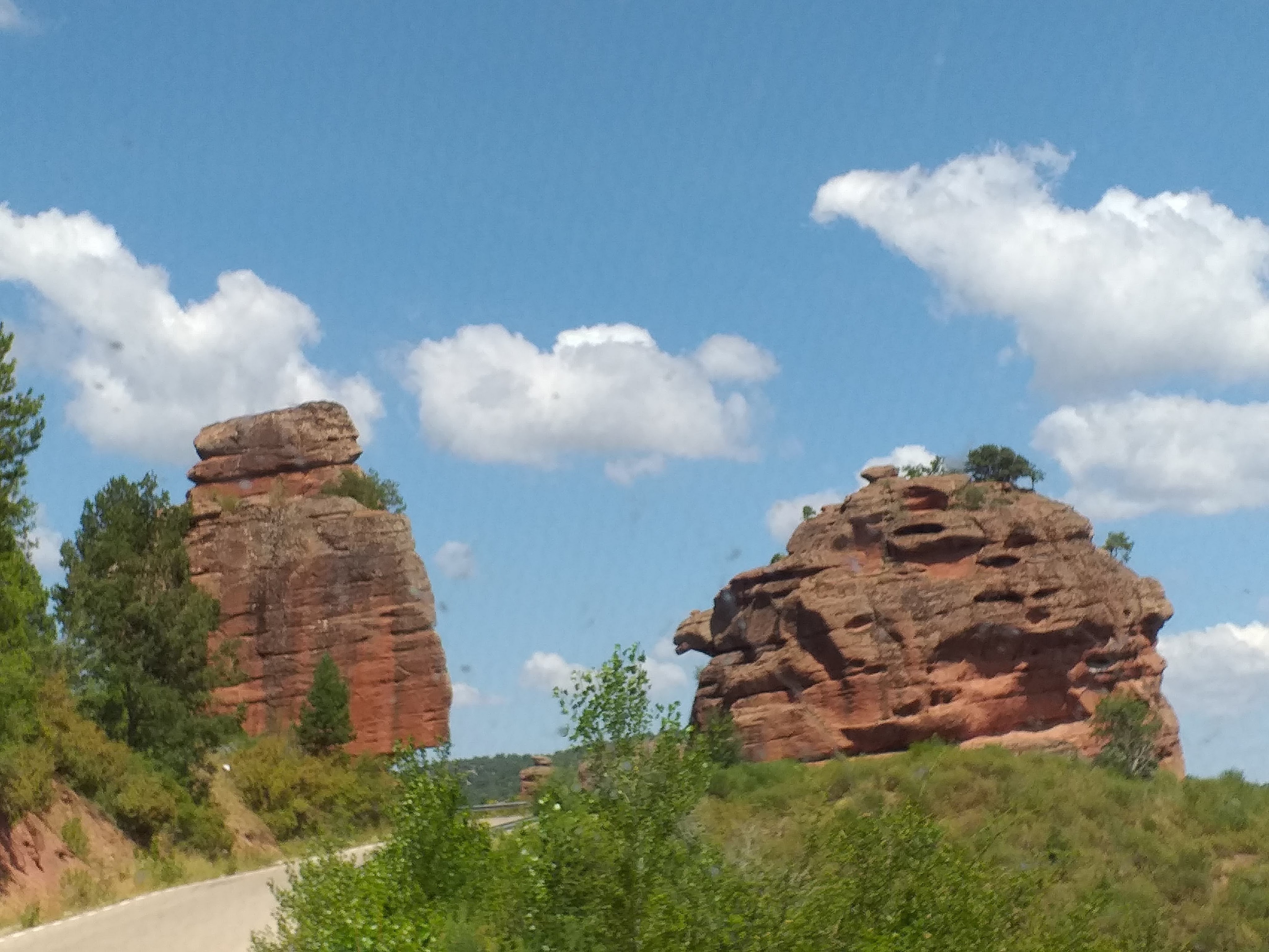 Per curiositat fem un tram de camí cap al Tajo, però tornem a la direcció de la nostra ruta cap a Checa i Chequilla uns poblets on trobem los «Torreones» que son els monuments naturals que formen les pedres roges que recorden vagament als pilars de Meteora.