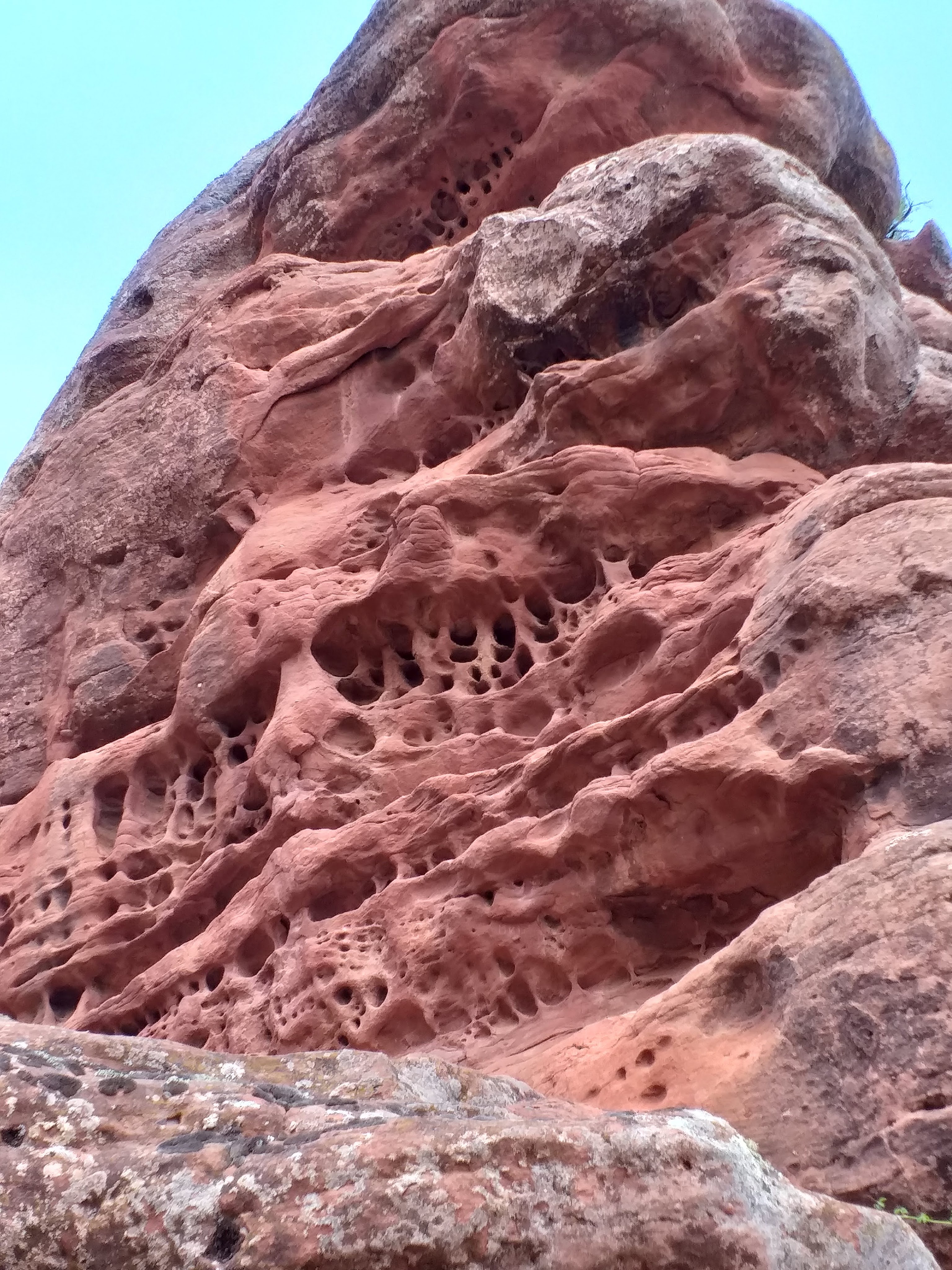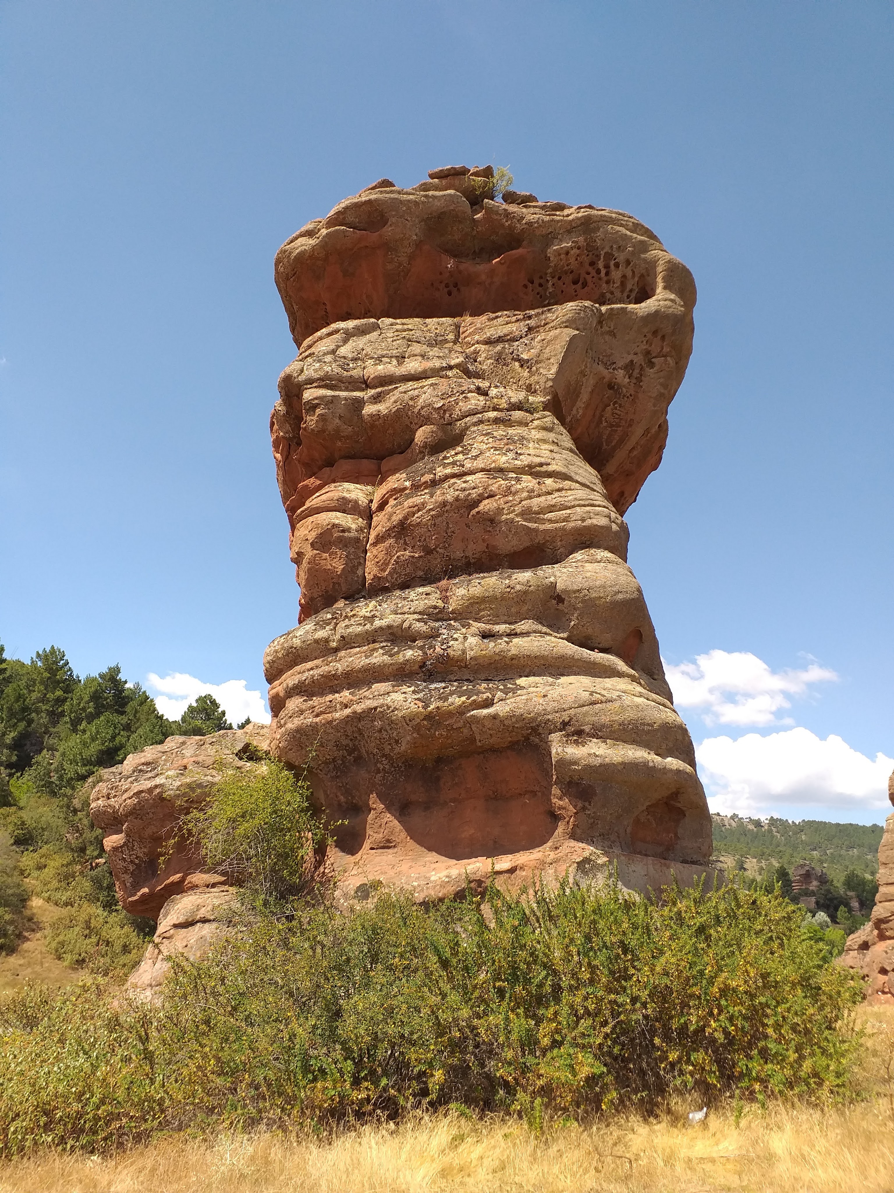 Ens arribem al Mirador de Escombrera, cap al barranc del Cabrerizo, en mig d’una zona increïblement verda i protegida que es diu Los Pinares de Rodeno que contrasta amb les formes monumentals que anirem trobant de les grans pedres vermelles. Sembla que son d’etapes prehistòriques prèvies al Mesozoic.