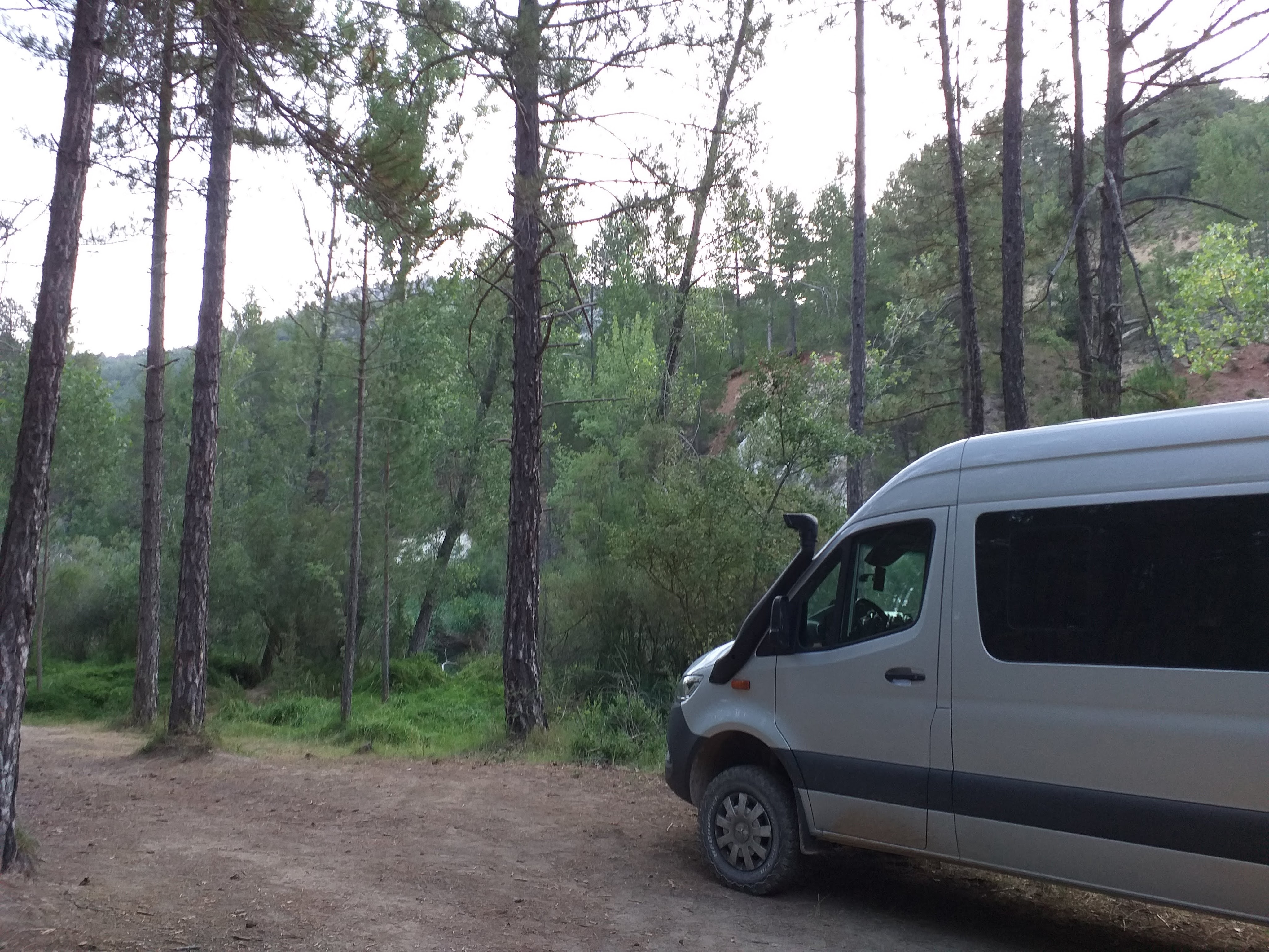 Aqui a Albarracin tenen molts pàrquings, es nota que estan acostumats al turisme, però en cap d’ells es pot pernoctar, així que fem una mica més de carretera i per camins 4×4 ens endinsem ja a l’inici de la ruta de las «montañas vacias» en la nostra versió «furgo», aventura off-road.