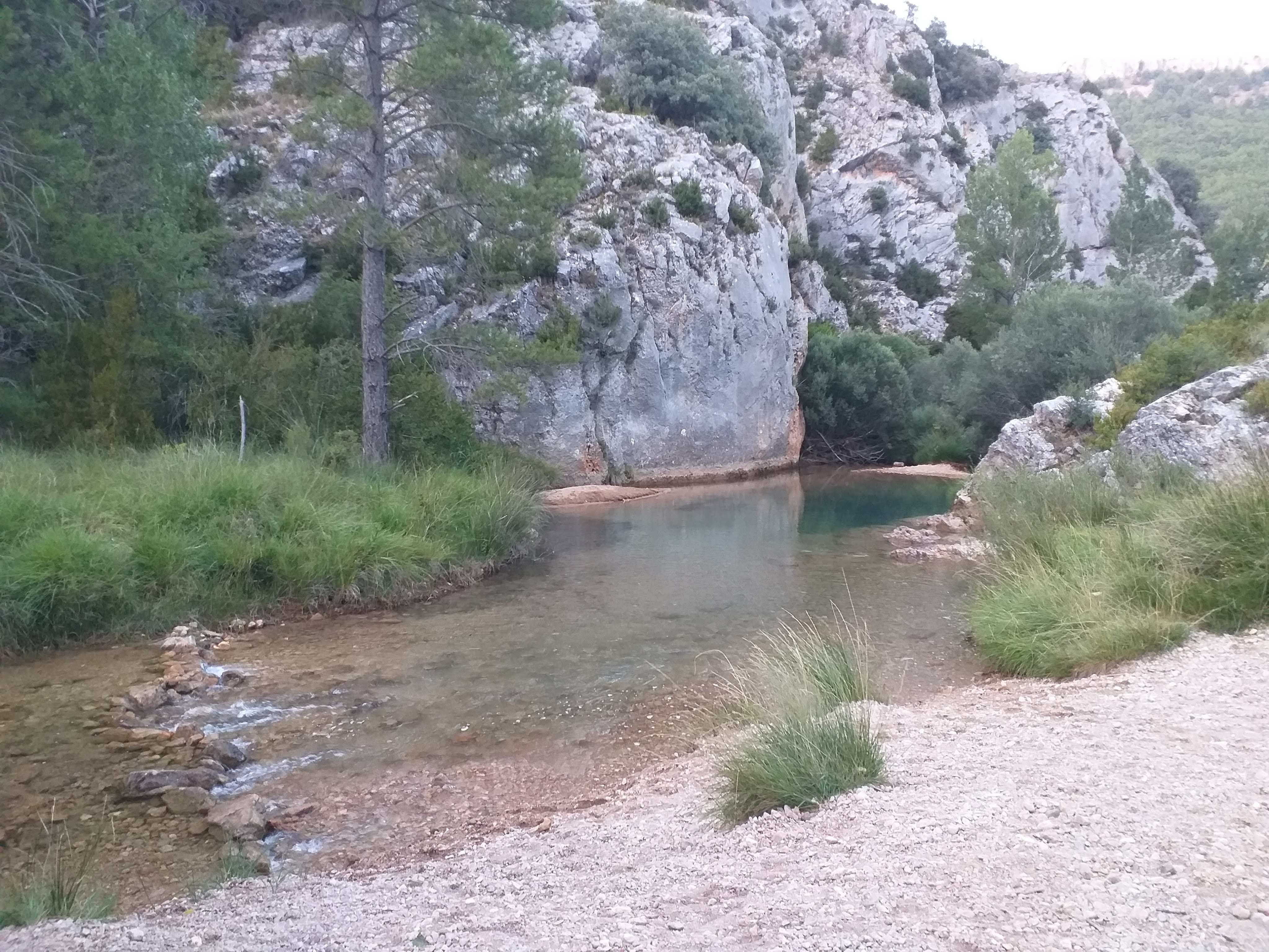 Finalment, i com diu un conegut nostre «los caminos difíciles llevan a sitios increibles» i aixi ha sigut: el final del camí ha estat un gorg magnífic amb les aigües cristallines del riu Cabriel que tenia preparat un lloc per a nosaltres per a fer nit. Després d’un bon bany, l’aigua freda ens ha tret totes les penes i l’adrenalina sobrera que ens ha generat la baixada.
