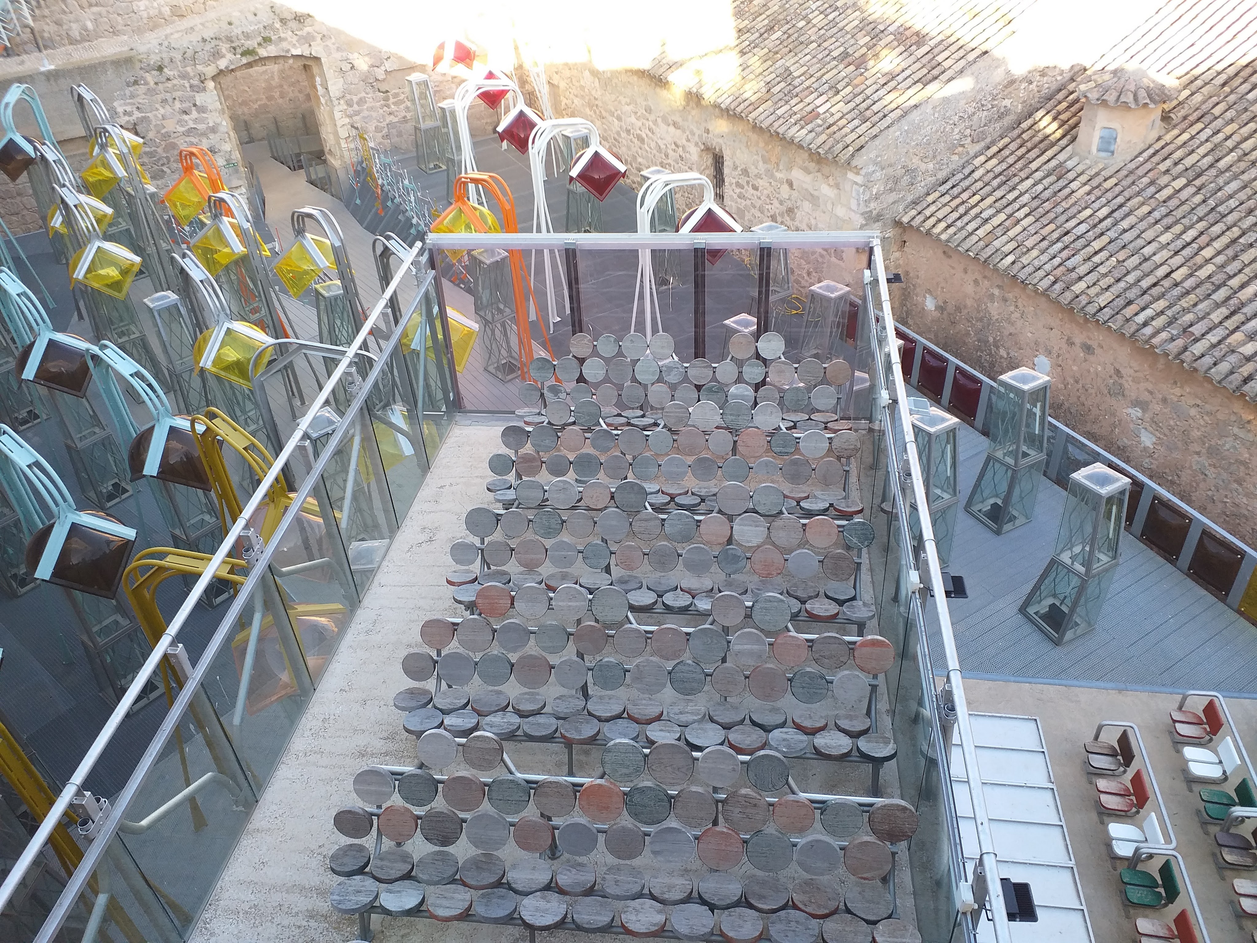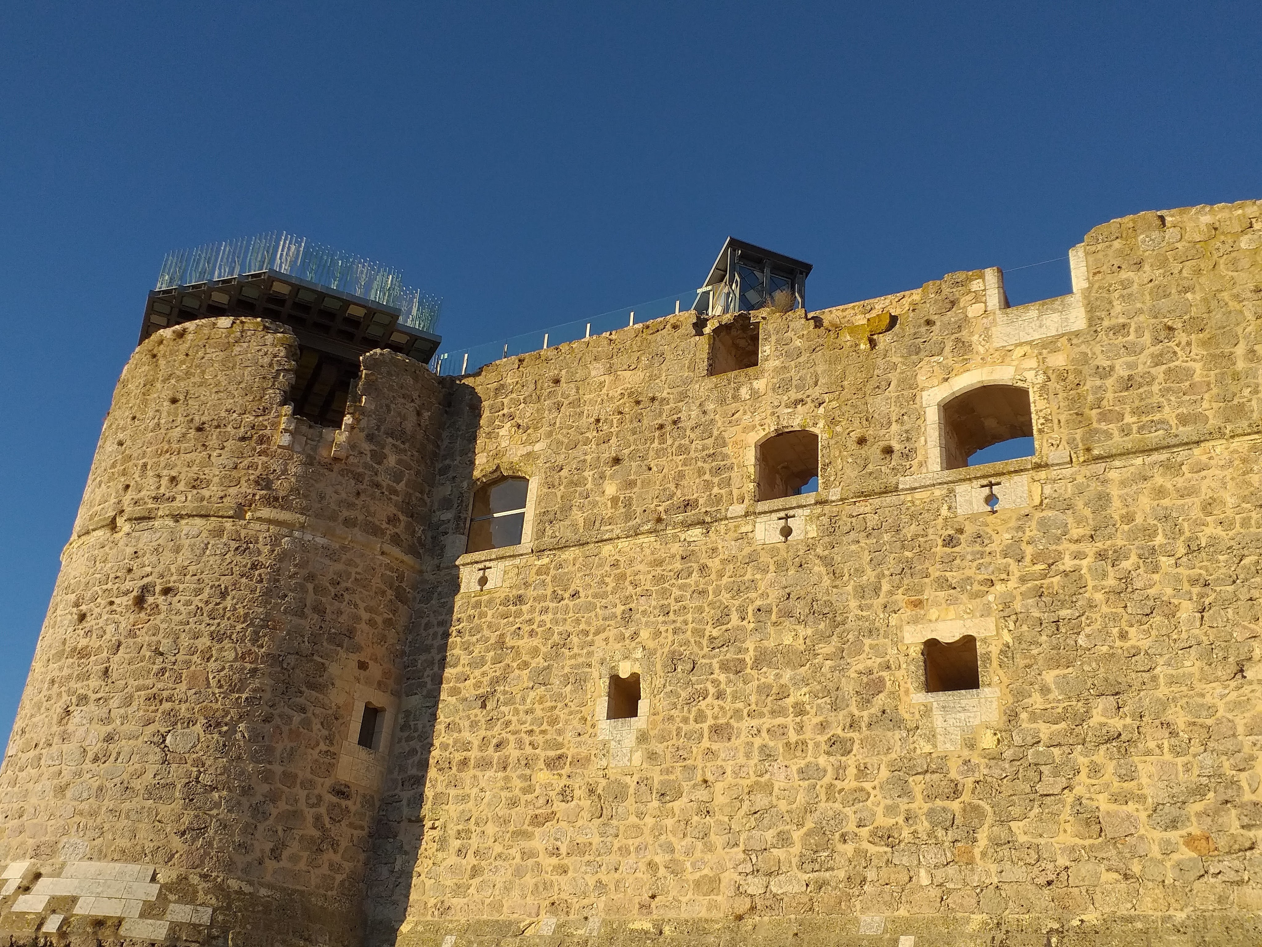 I, com no, visitem el castell. ja a l’entrada em vist una estructura estranya que hem pensat que era per donar ombra si fas cua per entrar…però qui ha de fer cua si en aquest lloc hi ha com a molt 200 habitants? No, no era per donar ombra. Tot el castell està ple d’una munió d’estructures de ferro que, suposadament, son una al·legoria a la natura… Son obra d’una arquitecta, Izaskun Chinchilla, qui va presentar a concurs el seu projecte de restauració i va guanyar. Era l’any 2013. la meva opinió? Espantós! No faré més comentaris al respecte, és veritat que hi ha gustos per a tothom, només diré que el castell hagués quedat preciós sense tota aquesta decoració.