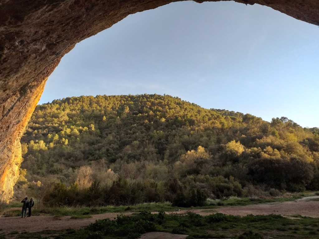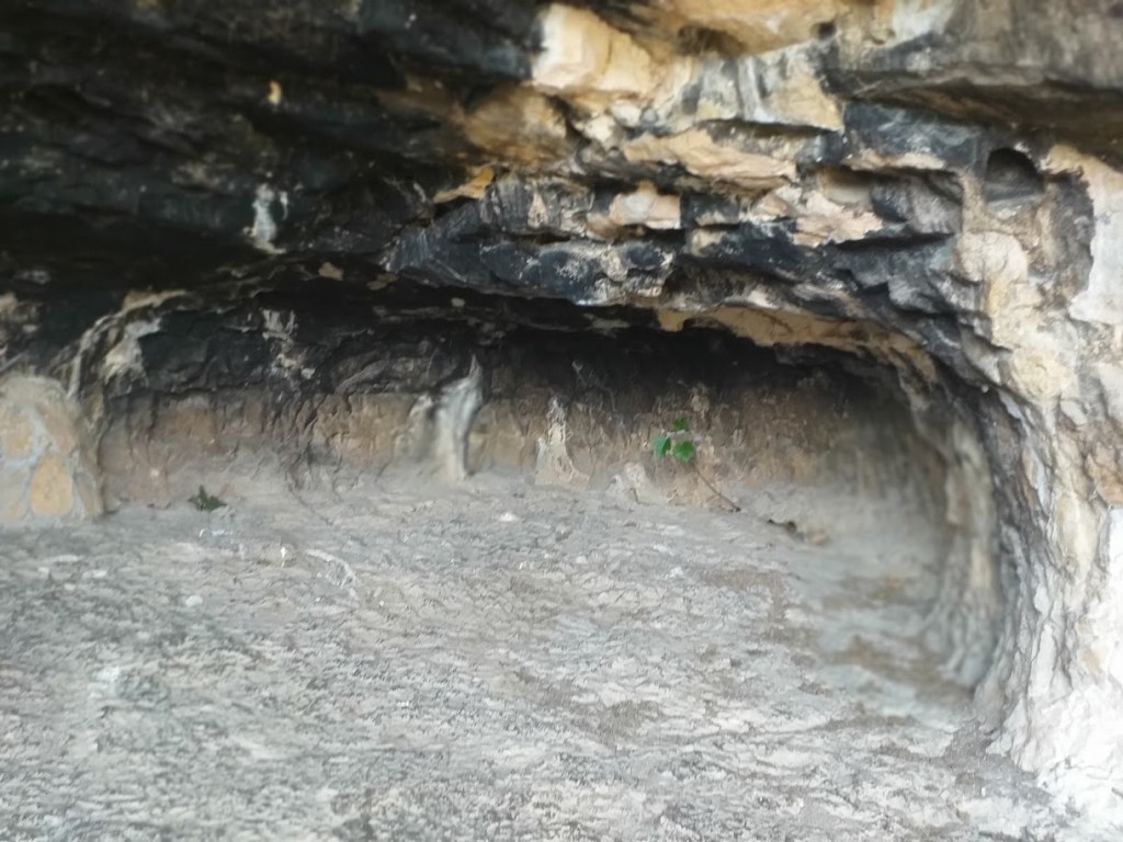 Avui hem fet una bona ruta a peu sota un sol de justícia i un cel sense núvols. Anem primer a la Font de la Mora, on ens refresquem una estona i seguim, amb una forta pujada, fins a la Cova de Joan d’Os. Aquí alguns ens hem animat a entrar amb els frontals, però m’ha durat poc la valentia perquè he girat cua i he sortit per cames a la que he vist el primer rat-penat penjant tan feliç…no l’he volgut molestar… En sortir hem anat cap a la Cova Patxarro i hem tornat cap a la Font de la Mora per un camí alternatiu que passava per una zona de eixams i un petit refugi.