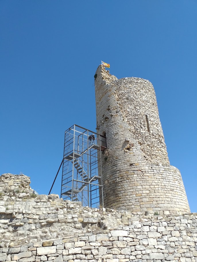 Després d’aquesta troballa, en Raúl ens porta fins al Castell d’Os de Balaguer que està al cim del poble, des d’on es veu la vall del riu Farfanya i on podem intuir també la balma de les pintures rupestres que acabem de veure.