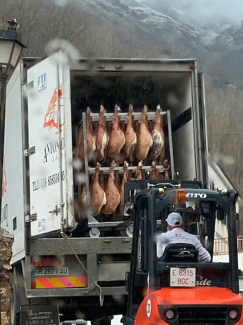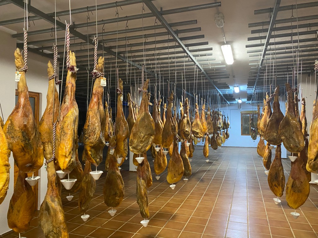 I hem arribat a Pontones al Secadero de jamones de la Sierra on a l’exterior te un espai precios per autocaravanes. Ens rep un señor darrera un taulell ben sortit de pernil, formatge, embotits de cérvols, olis de la zona, vins… però no només això! També ven els seus llibres i resulta que es un erudit en la història de la zona.