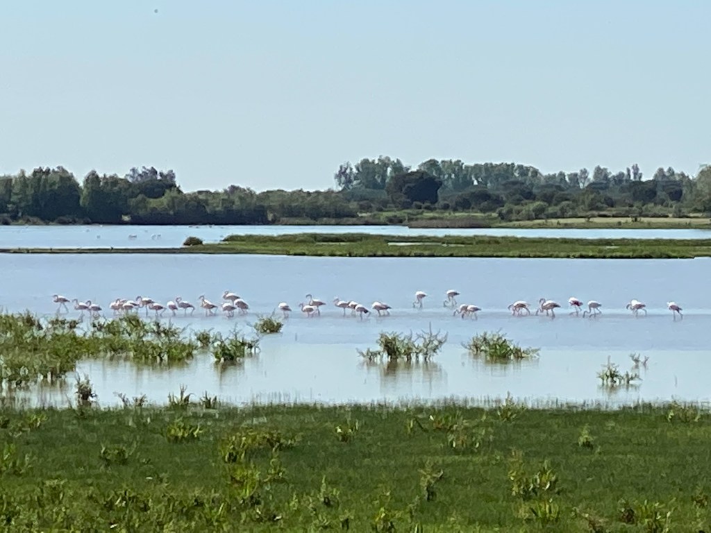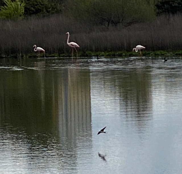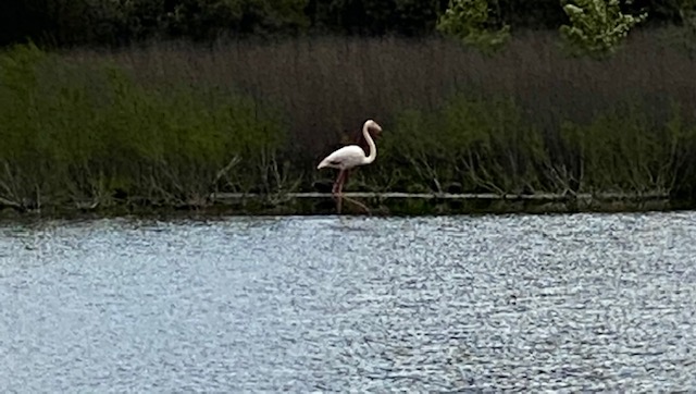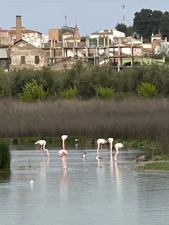Després, per un camí de pedres, hem fet la volta per darrera de les salines i hem vist alguns flamencs elegants. Ens hem estat una estona gaudint-los.