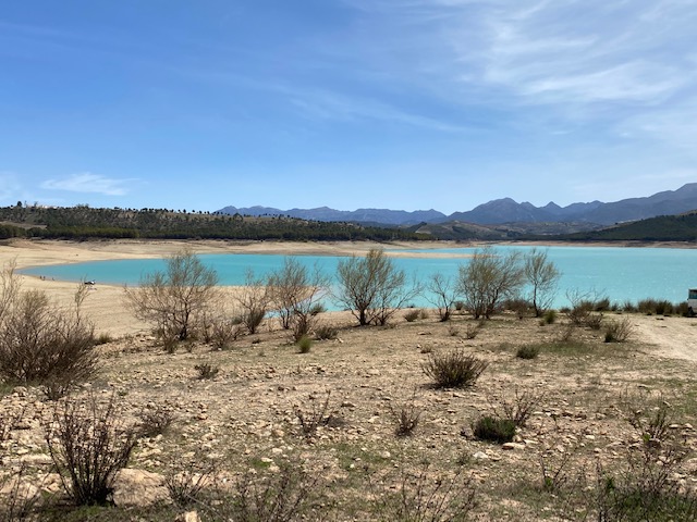 Hem seguit ruta i, de seguida, ens trobem amb l’Embassament del Tranco que veiem àmpliament des del Mirador Fèlix Rodríguez de la Fuente. L’embassament està molt baix d’aigua i, de Bujaraiza, que es el nom del poble que van cobrir d’aigua per a fer l’Embassament, es veu el castell dalt d’una illeta però que ara es zona verda perquè l’aigua no arriba a cobrir-lo. Crec que ha tingut millors temps.