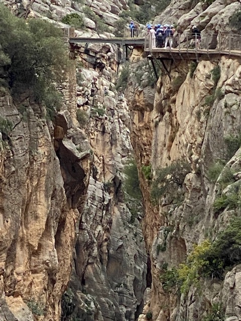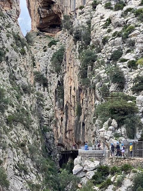 Hem parat després al punt d’observació d’aus del camí “el Chorro” i ens trobem un grup de joves escalant. Son de la Junta d’Andalusia (Medi Ambient) i de la Universitat de Jaén i estant intervenint als nius de voltors, on estan anellant els pollets per a seguir-los la pista. Molt curiós.