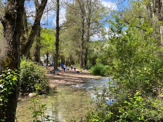 I hem marxat cap al naixement del Riu Segura travessant un bosc immens i, quan hem arribat allà, ha resultat molt curiós perquè del no res, d’un forat fet a la terra, brolla l’aigua tranquil·lament formant una petita llacuna que ja baixa a xorro cap al llit del riu que serà el riu Segura que regarà tota l’horta murciana.