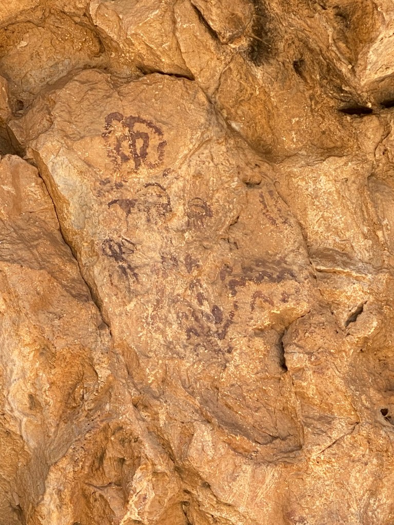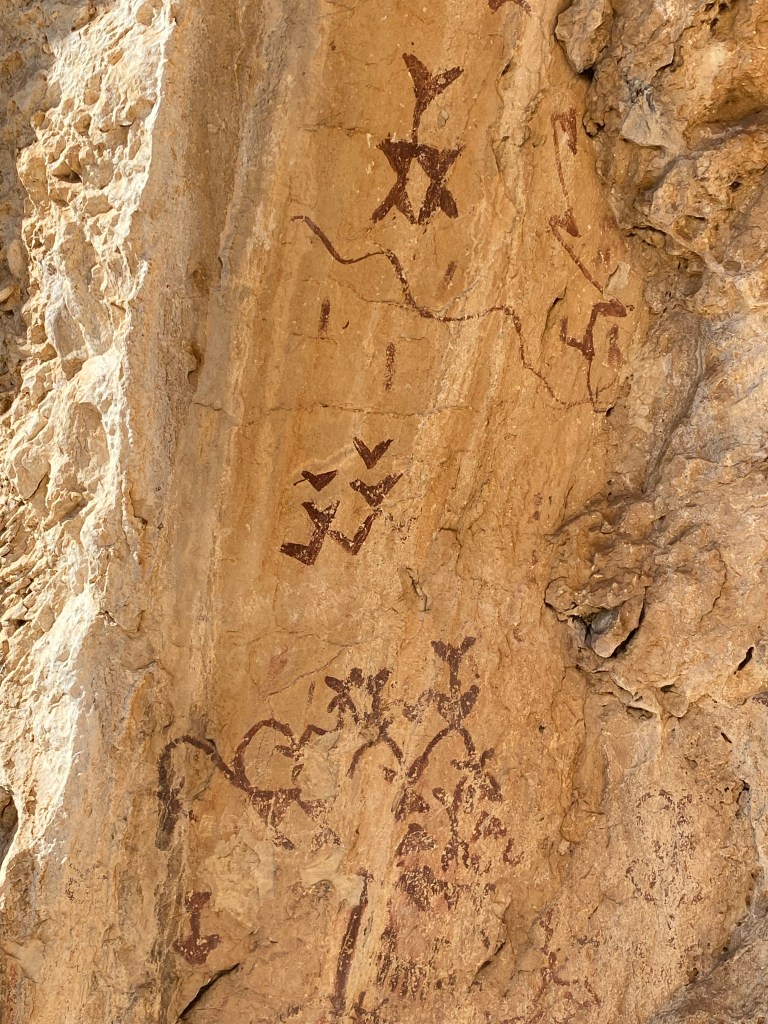 Un d’aquests símbols crida l’atenció per tenir els braços per sobre del cap. Al preguntar-li a la guia si podia ser una inspiració de l’Indalo, símbol d’Almeria, ens explica la següent història: