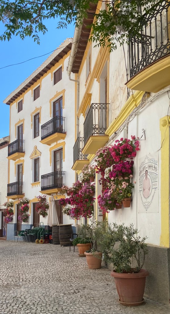 Ens hi hem passejat entre les flors, els carrers blancs, els safarejos i hem topat amb la plaça de l’Ajuntament on està “el meson de la plaza”. Hem parat a picar alguna cosa i això s’ha convertit en un dinar “de meson”. La senyora que ho porta ens ha explicat la seva vida culinària i la dels seus clients i ha estat un molt bon inici de viatge.