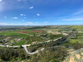 I va escampant a poc a poc i podem veure les grans extensions de cultiu de vinya i ametllers.