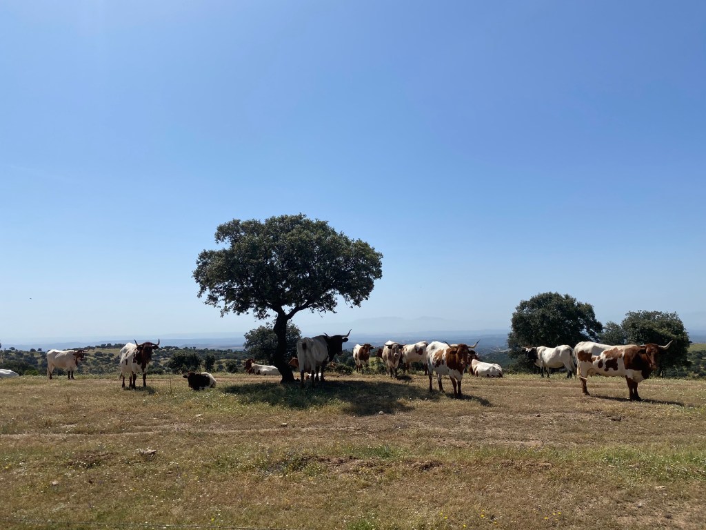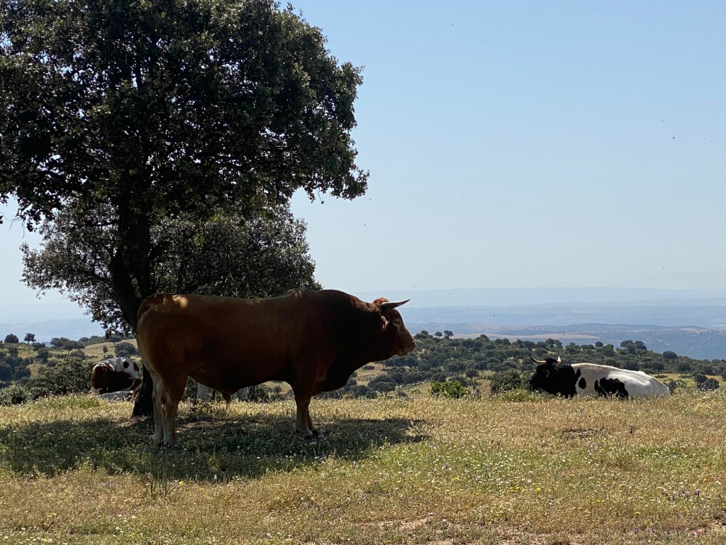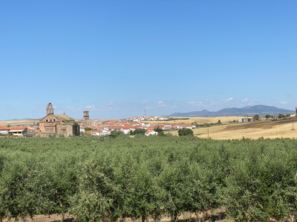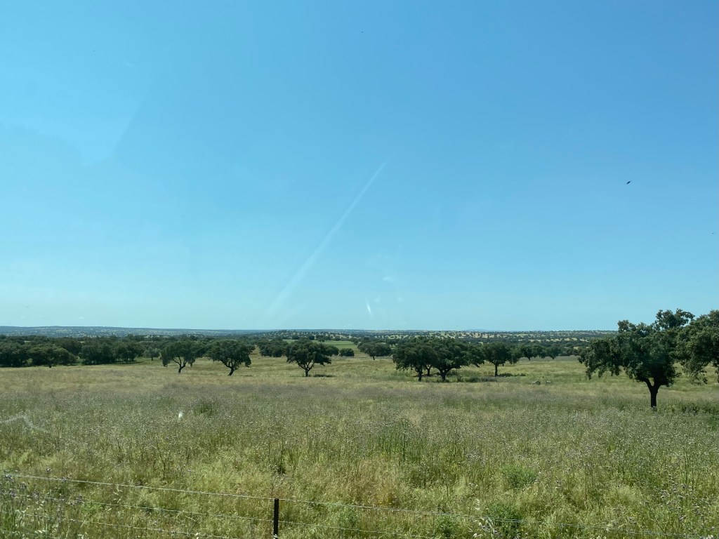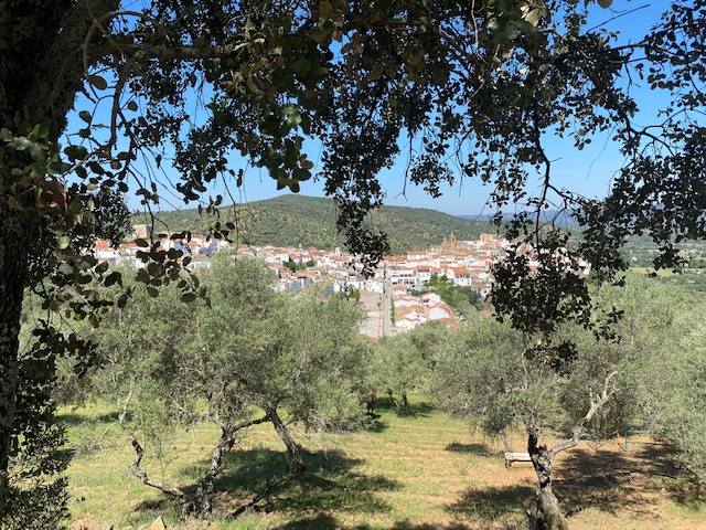 I portem una bona estona buscant una ombra on poder parar a dinar i això es tan pla que no hi ha manera! Finalment dinem sota uns arbres a l’entrada de un poblet que es diu Fàtima.