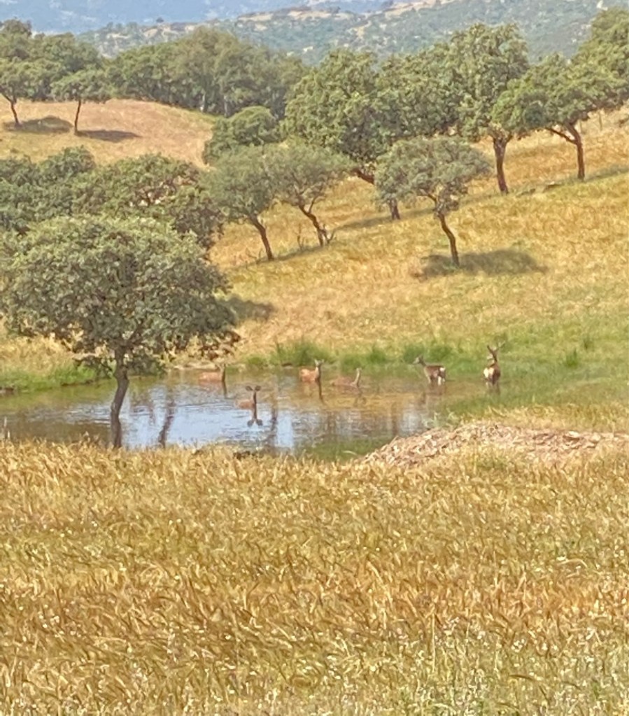 Després, ja de tornada, al passar per l’Embassament de la Bolera, hem vist una petita terrassa sobre l’aigua i hem baixat a tafanejar: hem acabat menjant una tapa de llom de cérvol, deliciós! Però la vista encara era millor: es veien els cérvols a l’altra banda de l’embassament. Vius i preciosos!!. Crec que no en menjaré mai mes.