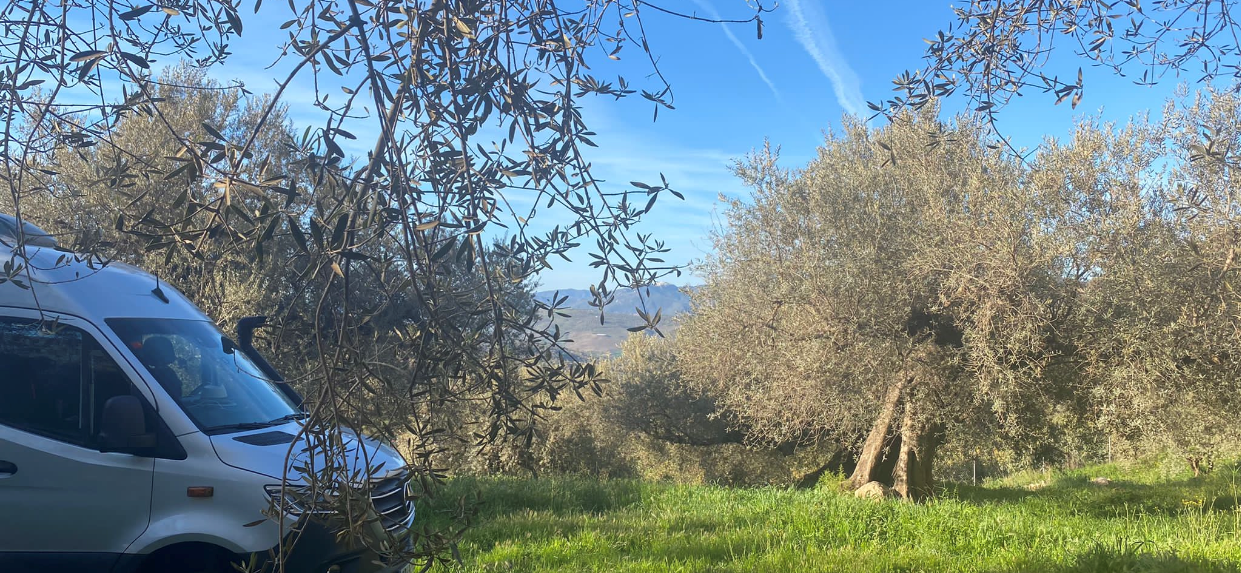 Hem arribat a la furgo amb el cel negre, però no ens ha plogut. Després de dinar ja ens hem preparat per marxar: allà mateix hem pogut emplenar el dipòsit d’aigua i hem fet cap als poblets del voltant. Avui dormirem a Padules i es preveu una altra nit freda i de pluja. Sort de la calefacció!