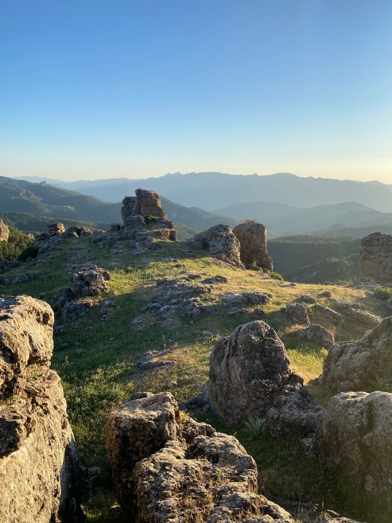 Hem fet un bon passeig a una zona de pedres amb formes estranyes amb una posta de sol preciosa. La nit ha estat deliciosa de silenci, només trencat per les òlives