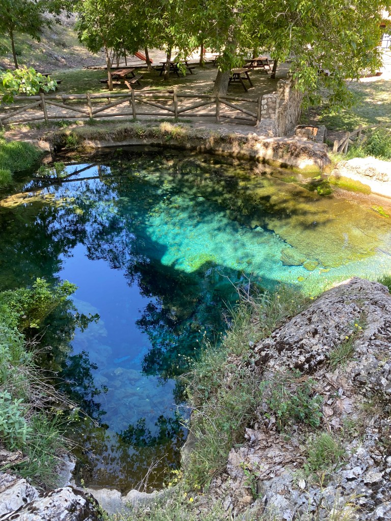 La veritat es que aquí només se senten els ocells i els esquellots d’algunes vaques. Es molt tranquil aquest indret del parc Natural de los Calares del Rio Mundo i la Sima, es com un gran circ de muntanyes i arbres i les aldees minúscules disseminades de gota en gota.