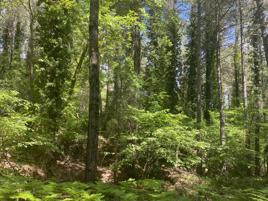 A la part del mig i a dalt de tot hi ha més planta de bosc i arbrat, vegetació natural de la zona, diferents tipus de pins i flors de muntanya, però tot molt ben cuidat. Aquí descobreixo una flor blanca preciosa que es diu Gamon que es com una branca blanca alta plena de flors, que se sembla a la tradicional vara de Sant Josep.