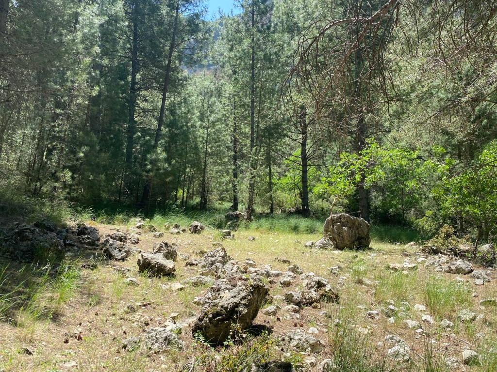 Després d’esmorzar hem anat a comprar pa i fruita a Los Giles una aldea petita prop del càmping i després hem anat d’excursió seguint el riu Tus i fins a arribar a la Cañada del Avellano, una esplanada on antigament la gent venia amb el burro fins aquí i carregaven algunes d’aquestes pedres que, per les seves característiques (no pesa, es refractària, es pot adaptar lleugerament…) era ideal per a fer les tapes dels forns de pedra en els que coïen a l’exterior de les cases.