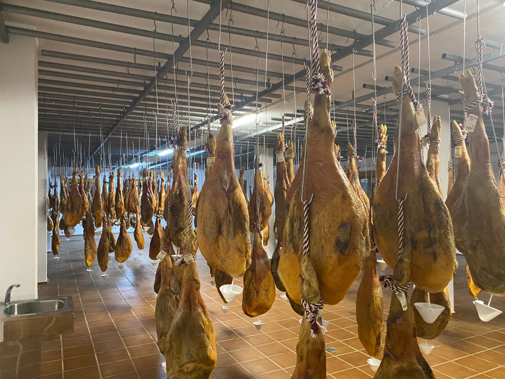 El senyor de l’assecador ens ensenya la immensa sala on assequen els pernils i ens explica tot el procediment de assecat tenint en compte la meteorologia, la humitat, els canvis primaverals, etc. Es molt interessant veure com suen diferent els pernils de porcs alimentats amb castanyes o glans, per exemple.