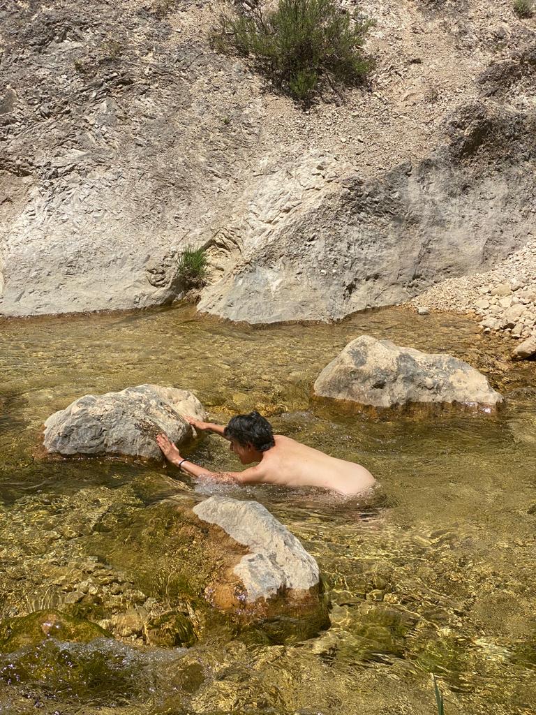 L’aigua era transparent i lluminosa i en Miquel no ha resistit la temptació de banyar-se.