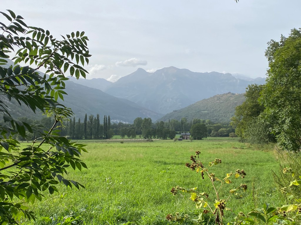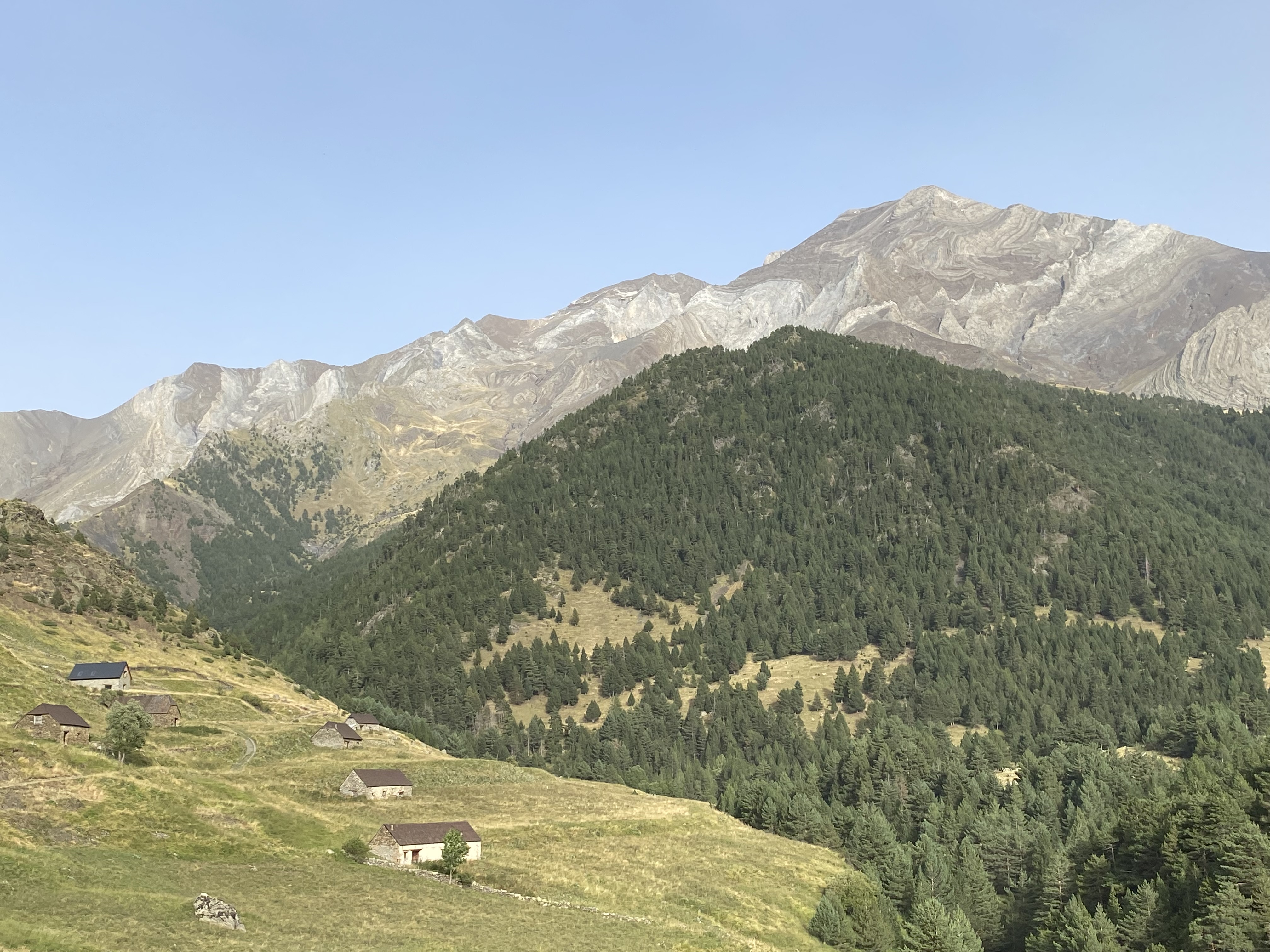 Sortim de Castejón direcció Benasque, agafem la carretera que va a Chia i allà, sortint a la dreta, hi ha l’inici del camí que va a Plan i que ens ofereix uns magnífics paisatges de la vall de Benasque i travessa el Parc Natural de Posets Maladeta,  tot i que el cel  està enteranyinat.