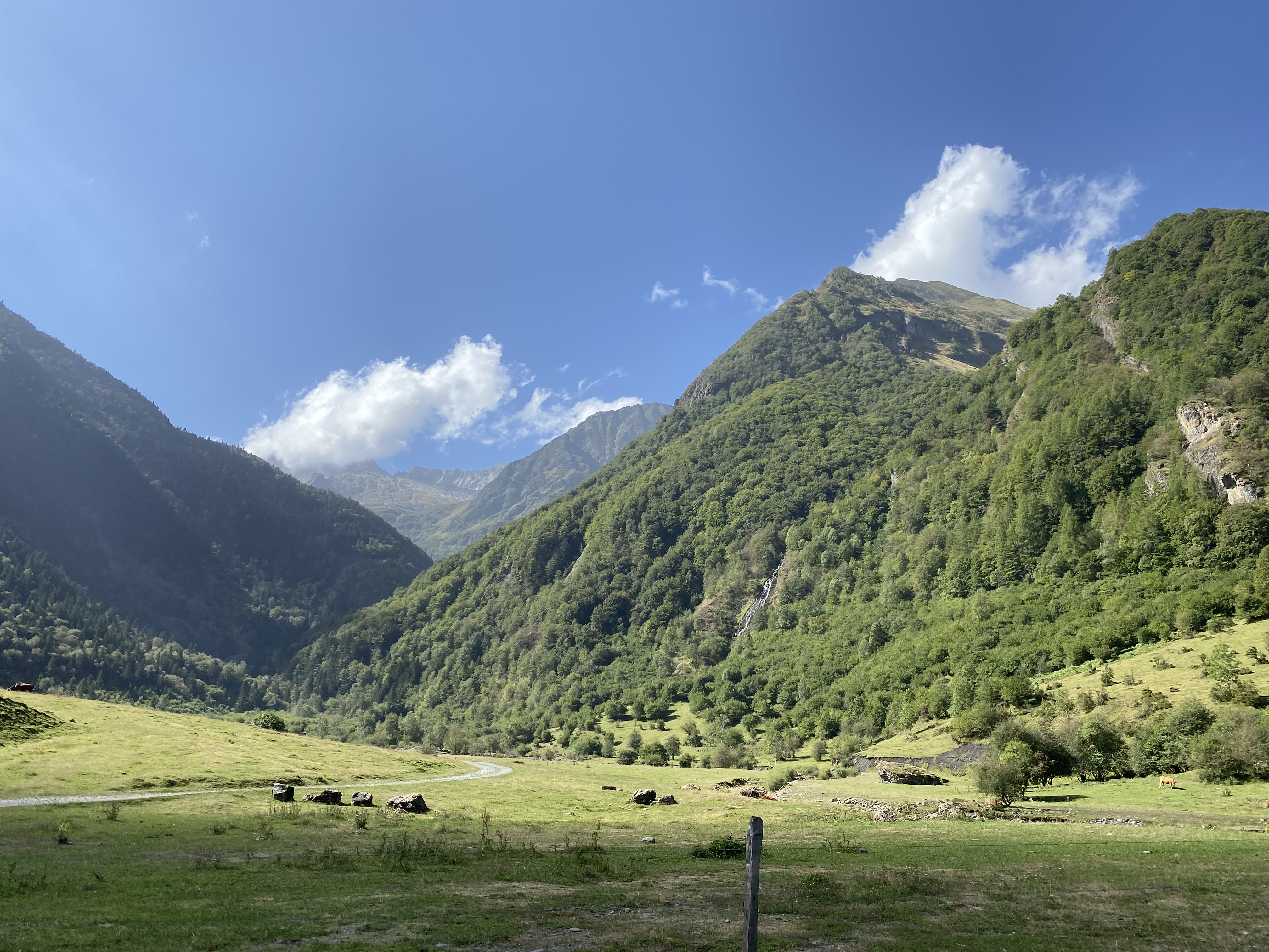 Hem arribat fins a Bedous i ens instal·len en un petit càmping de muntanya on estem ben sols, només rodejats d’arbres fruiters i el son de les esquelles de les vaques properes.