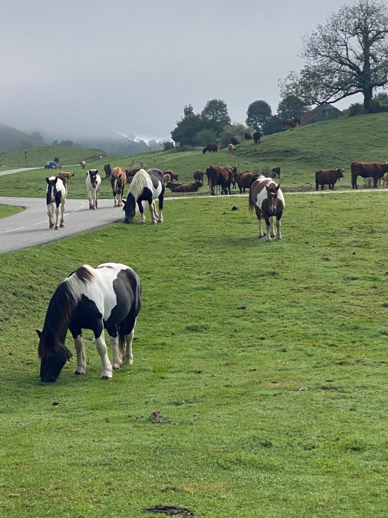 Avui hem sortit d’hora de Laruns. La carretera que anem seguint ens porta fins al Col de Marie Blanque 1035m tot ple d’esplanades verdíssimes plenes de vaques i de  cavalls, de centenars de ciclistes i de de carreteres estretes de muntanya.