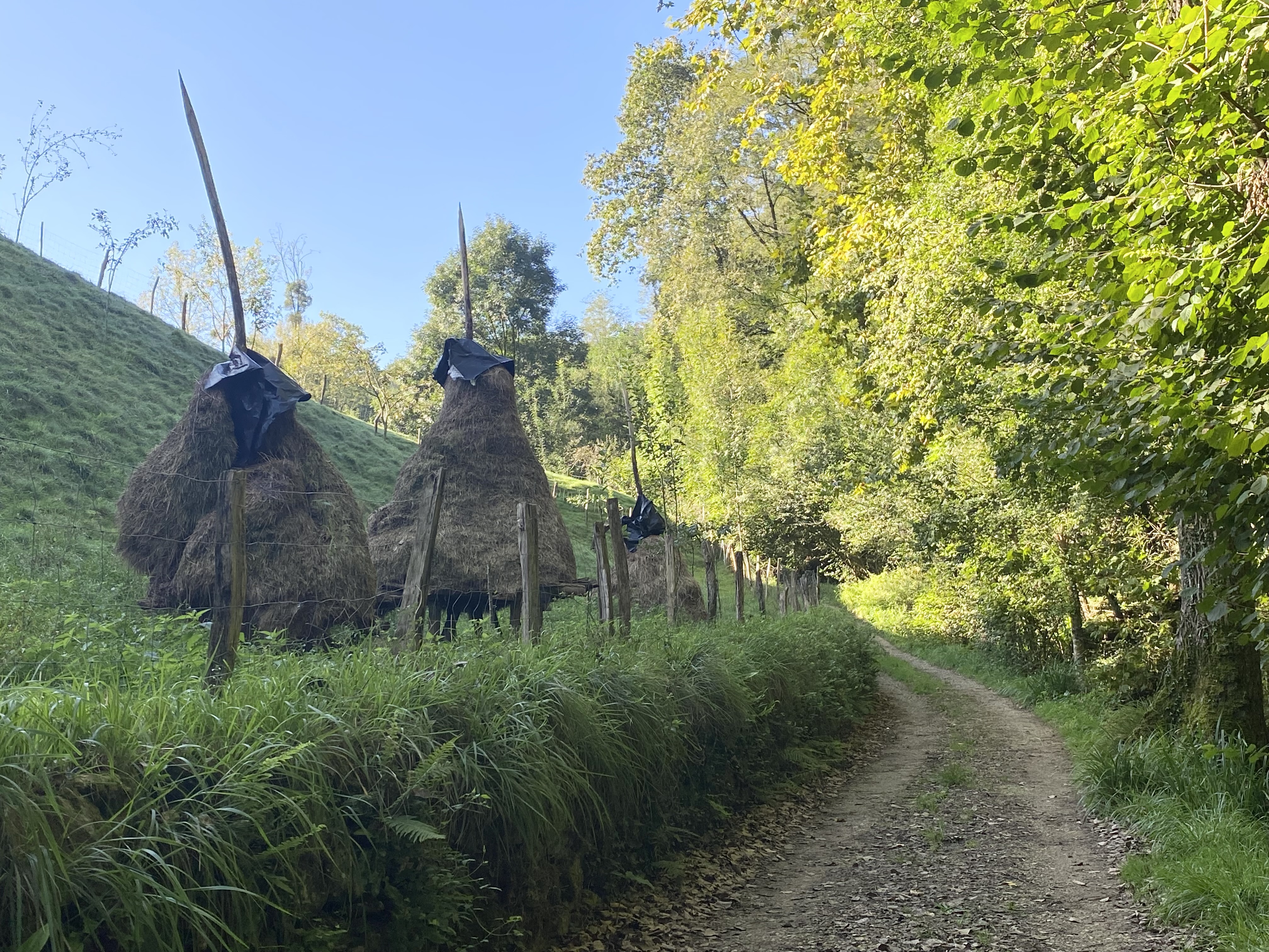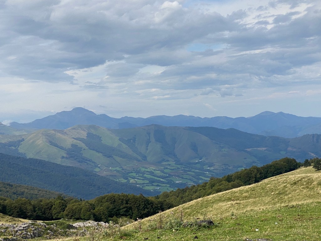 Avui hem fet una bona caminada de 11,6 km i gairebé 500m. de desnivell. Hem sortit de Lesaka per uns boscos verds i ombrívols, fins a l’ermita  de la Piedad i fins al mont Frain des d’on hi ha unes vistes precioses de tota la muntanya que rodeja la zona i, com que el dia era molt clar, hem vist el mar i, molt probablement, el cap Higuer, que és el final de la Tranpirenàica.