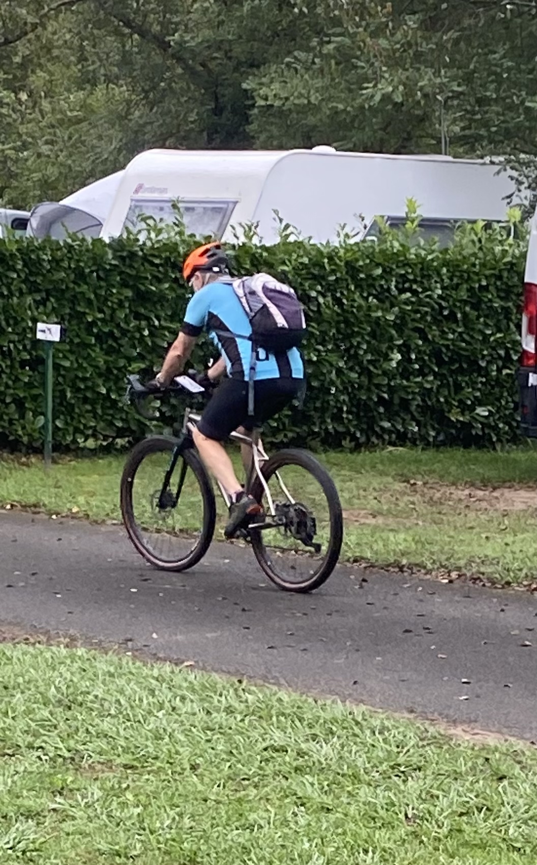 Jo m’he pogut eixugar i posar-me a cobert dins la furgo, però he passat una estona de preocupació sense saber si el ciclista estava aixopluc. Més tard, quan ha tingut cobertura, un whatsApp m’ha dit que estava a cobert i, al cap d’una estona, ha tornat dels seus 90 km en bici. Després ha estat una tarda plujosa i de descans.