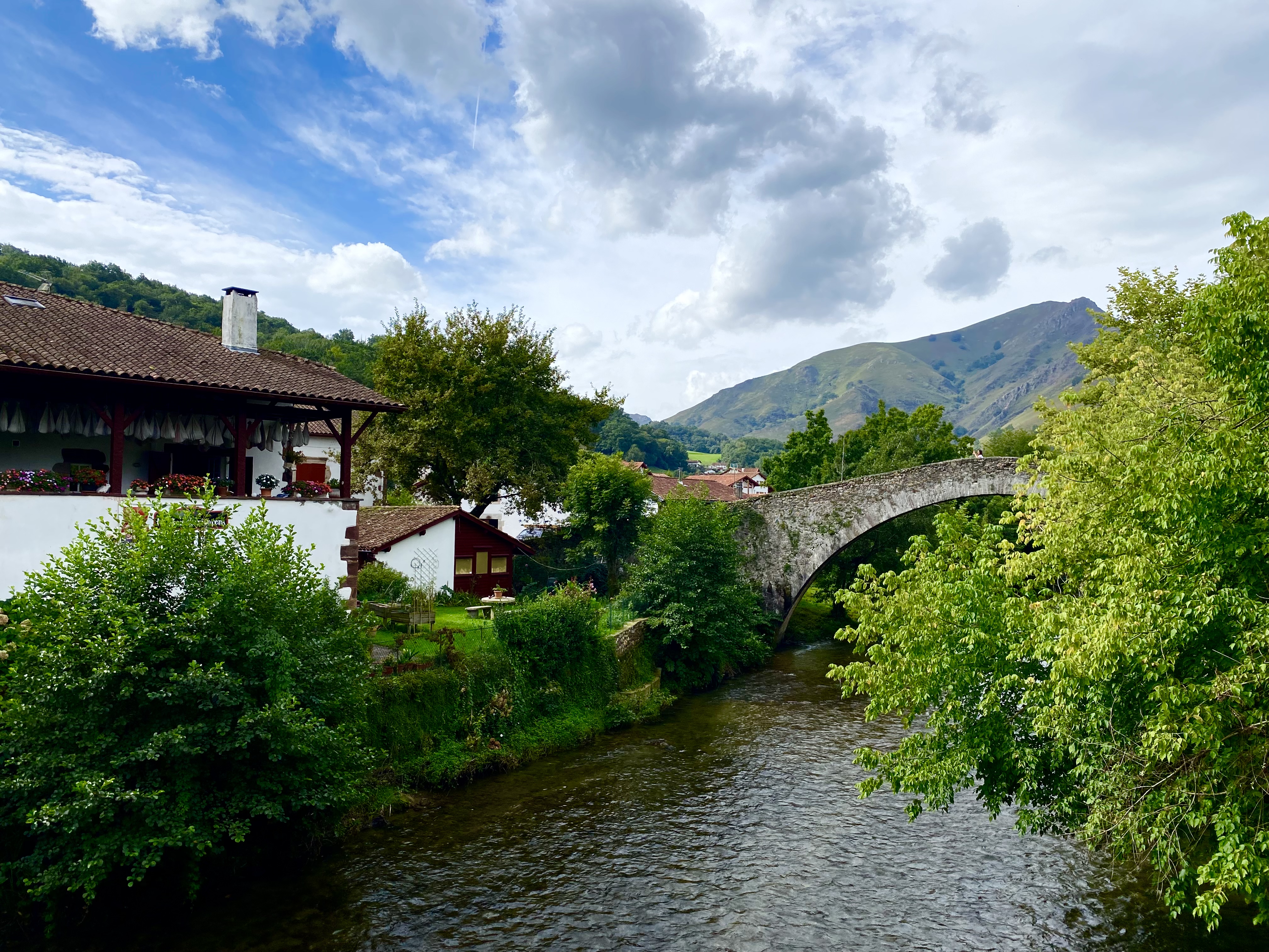 Jo he anat cap al poble però està tot tancat, no hi ha gent pels carrers i l’únic que he pogut visitar ha estat l’església de Saint Etienne de Baigorry i un pont romà sobre el riu. Això si, he pogut admirar la cura que tenen de les cases immenses, les flors. Està tot molt net i cuidat. Quan he començat a tornar cap al càmping, ha començat el diluvi universal.
