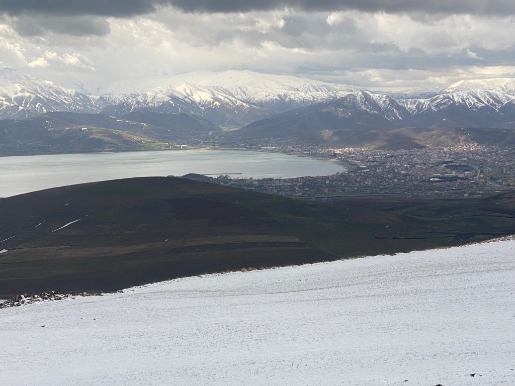 Hem deixat la riba del llac per a intentar pujar volcà Nemrut (2.935m.) però la neu no ens ha permès pujar fins al cràter on diuen que hi ha un llac. Ha valgut la pena l’intent i la vista des d’a dalt.