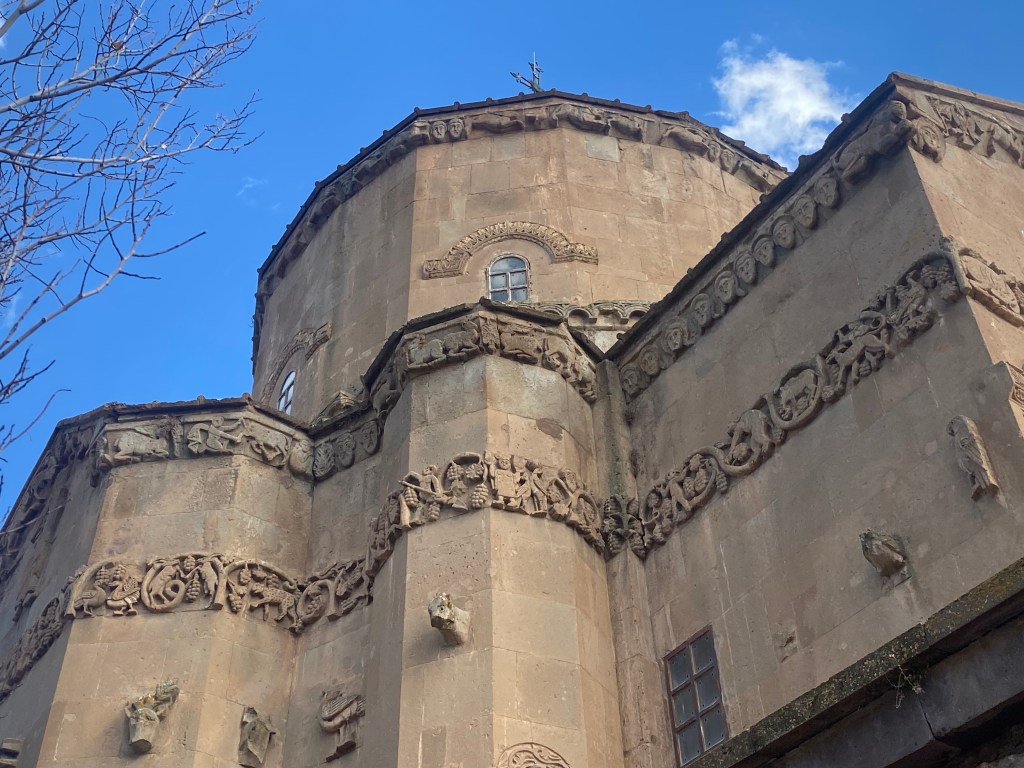 L’església és preciosa. Està considerada una de les meravelles de l’arquitectura armènia, la façana te relleus de la Bíblia ben conservats, l’interior alguns frescos i l’entorn rodejat del llac i muntanyes nevades.