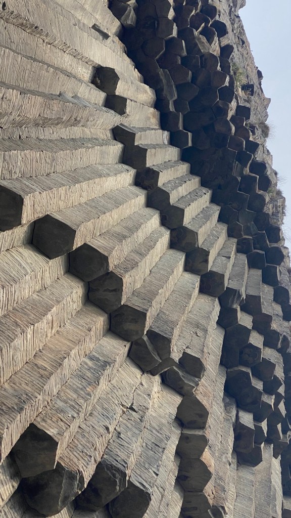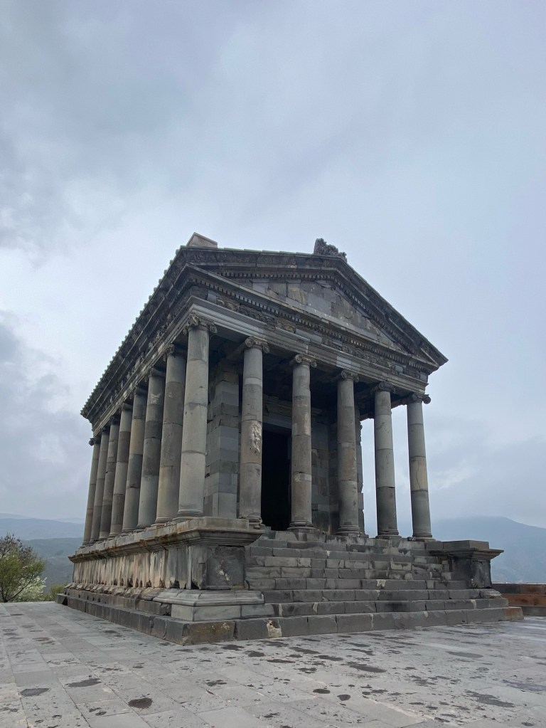 Hem arribat al Temple de Garni dedicat al deu Sol i construït en un penya-segat. Recorda una mica al Partenó tot i que està reformat però la vista des d’aquí de la vall del riu Azat is impressionant. Aquí mateix es troba la Simfonia de les pedres que es un veritable espectacle de la força de la natura en forma de plegaments i columnes basàltiques.