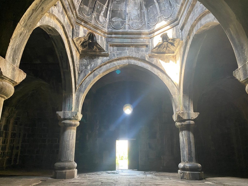 Després hem creuat e congost que porta al Monestir de Noravank del segle XIII d’una gran simplicitat interior. Tot i que l’església armènia és una branca del cristianisme, l’estètica és molt austera i sense imatges.