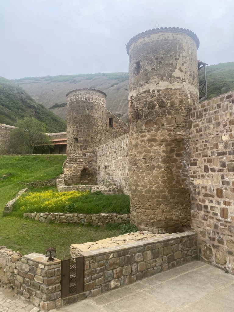 Hem fet una primera parada al Monestir Bodbe, majestuós per l’entorn amb vistes al Caucas nevat, on està enterrada la Santa Ninó que va fer de Geòrgia el segon país catòlic al segle IV. És un lloc de pelegrinatges.