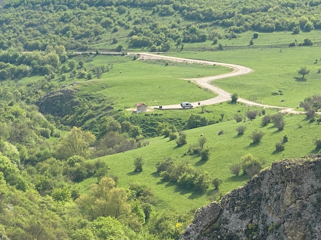 Tot baixant per aquest idíl·lic paisatge hem trobat al poblet de Udabno (com el monestir), un espai per a campers gratuït (només pagues dutxa si la utilitzes). És un lloc molt especial i aquí ens hem quedat, gaudint d’un capvespre molt agradable. Hem sopat un Khachapuri i hem tastat el Chachacelo!!!