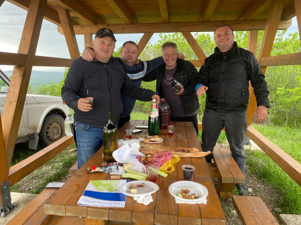 Ha estat una ruta off-road completa fins arribar al mirador del Mijnis Kure des d’on es veuen unes vistes espectaculars de les muntanyes. Aquí hem dinat i la tornada ha estat mes plàcida per la zona de Shavi Mta per on es veuen pastures immenses.