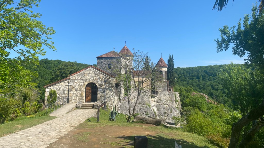Hem visitat la capella de Lamaria que correspon a l’equivalent pagà de Santa Maria. És una capella plena de pintures a les parets i avui hi havia un oficiant vestit de vermell amb el barret tradicional de l’església georgiana.