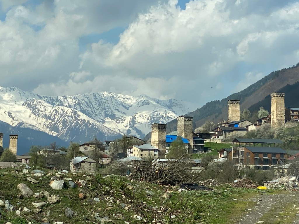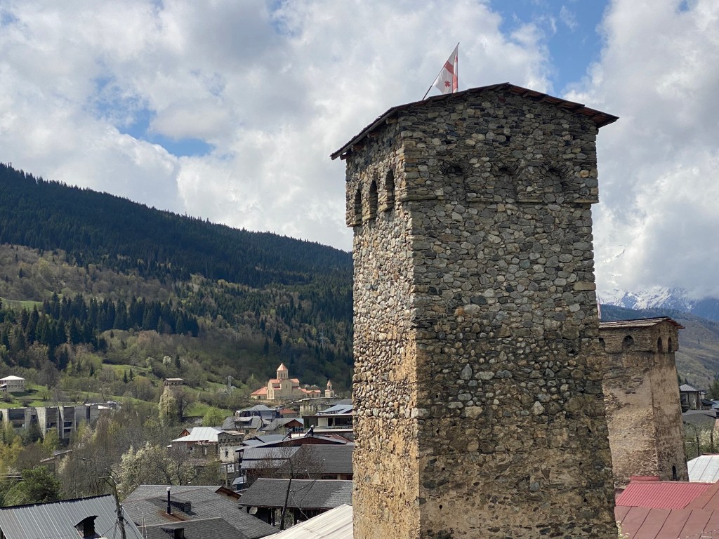 Mestia està entre les muntanyes nevades del Caucas i està sembrada de les 175 torres defensives, denominades koshkebi, dels segles IX i X, en l’època en que els mongols van arribar fins aquí amb afany conqueridor.