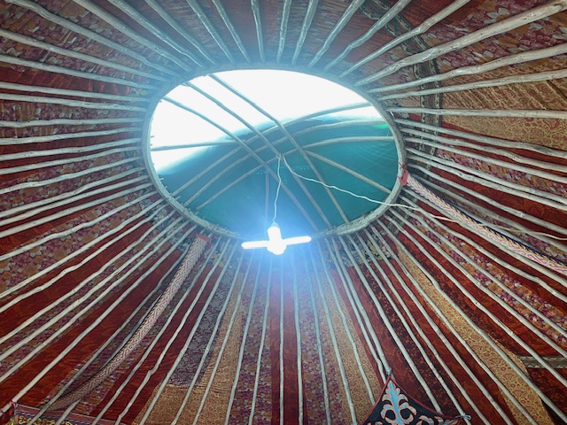L’interior dels gers és molt acolorit, cobert de catifes i coixins però, en aquest cas, els llits son antiquíssims i de molles i, tot i que el lloc es molt agradable, preferim dormir al llit de la nostra furgo.
