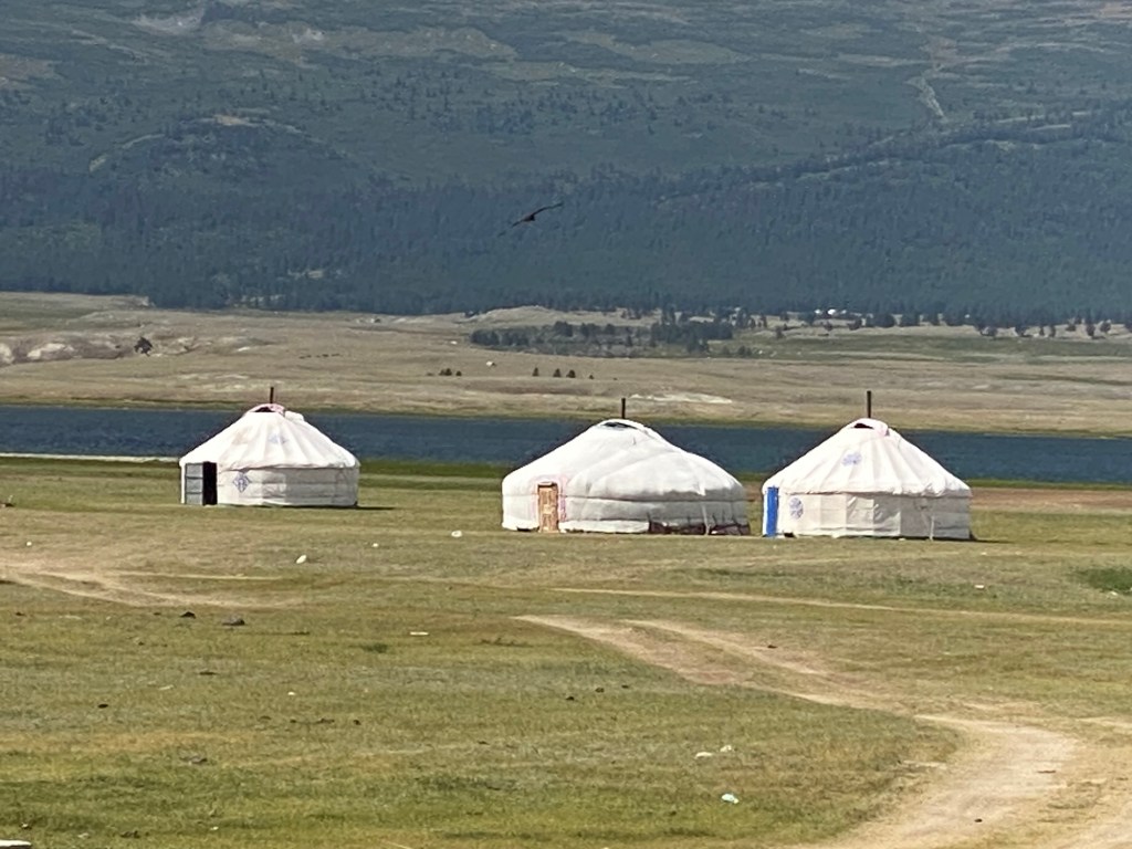 Aviat hem entrat a la regió del al Parc Nacional del Khorgo Terkhiin Tsagaan Nuur, per a mi una de les mes boniques i mes verdes de Mongòlia (en quant a paisatge), per la quantitat de iurtes nòmades autèntiques amb els seus ramats immensos de iacs. És un color verd espectacular amb muntanyes suaus que semblen tapissadades. Per a mi sempre mes serà el “verd Mongòlia”