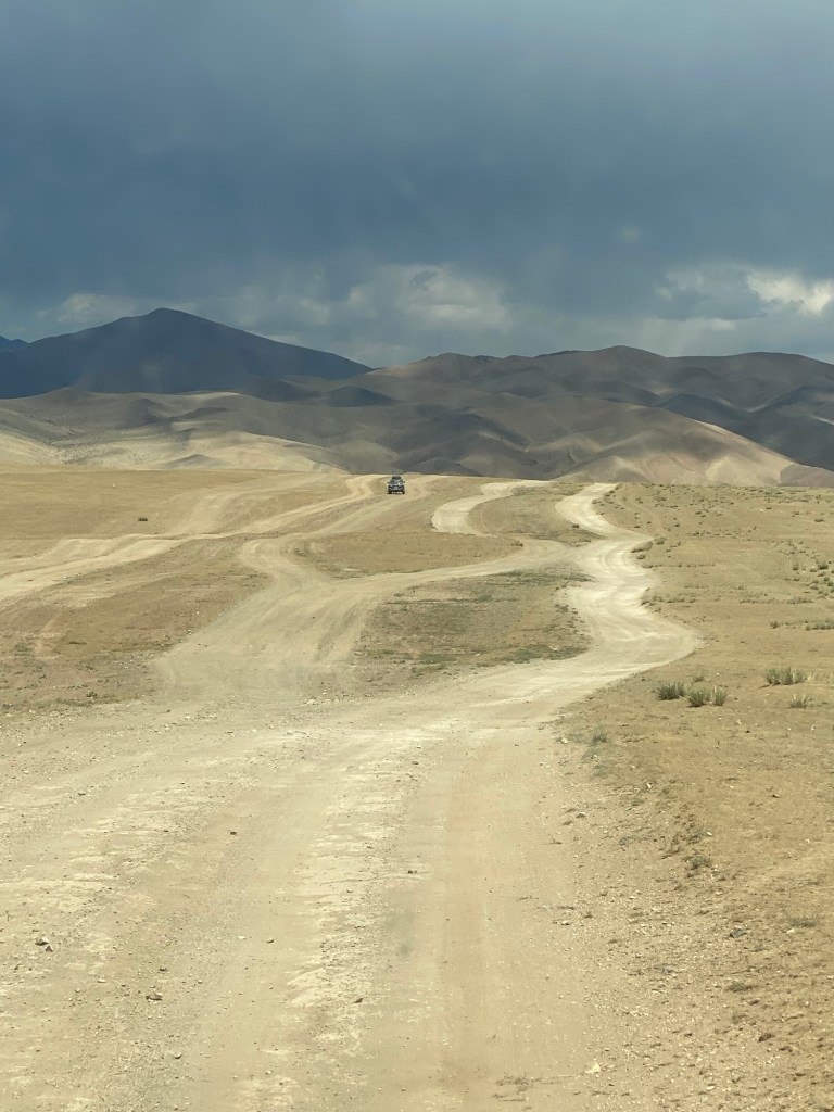 Hem trobat trams de molta sorra, trams d’aiguamolls pels que no podíem passar però al final, després d’una avaria en la furgo d’en Michael i l’Ana (que han pogut reparar), hem arribat a Tsengel.