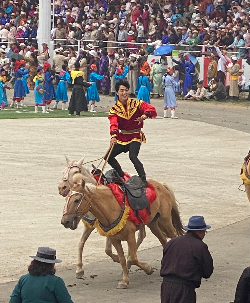 I a Tsengel s’estava celebrant el Naadam, la seva festa principal amb lluita lliure, carreres de cavalls, tir amb arc, jocs, botigues de tot una mica i gers on poder menjar.