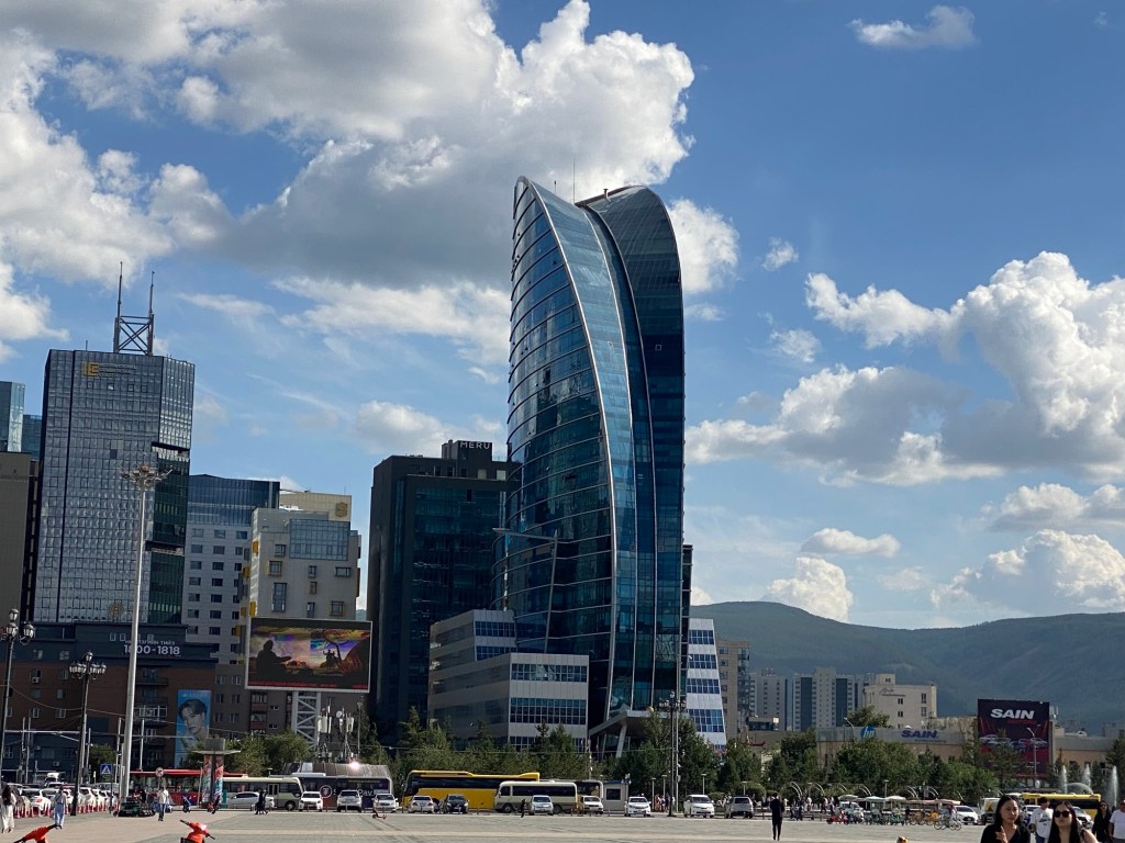 Passejant, arribem a la plaça de Sukhbaatar, on hi ha la estàtua de Gengis Khan. Aquesta és la zona centre de la ciutat amb una profusió de edificis moderns però sense cap planificació.
