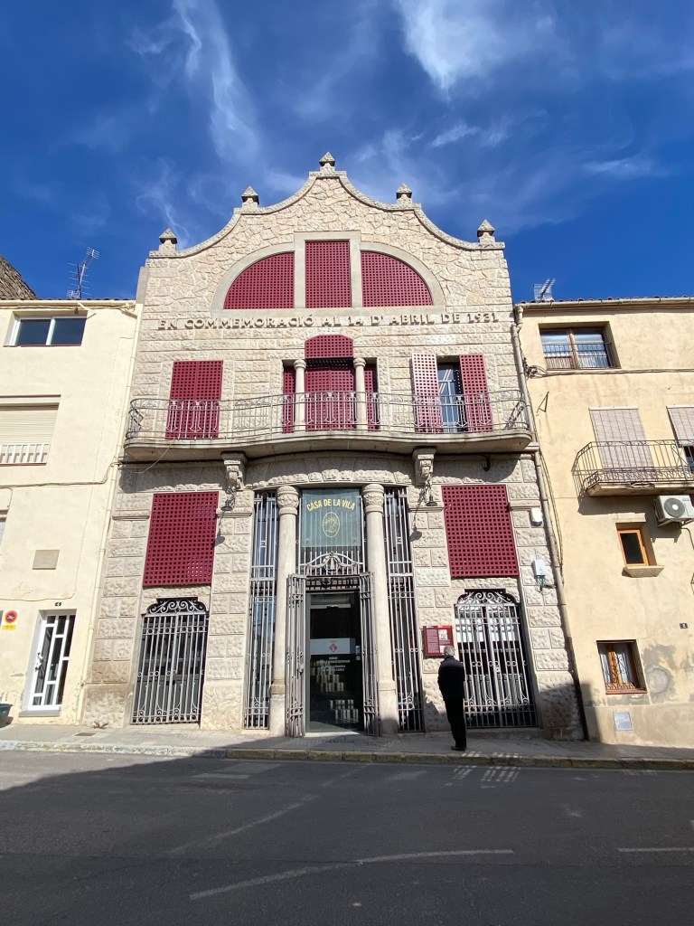 Aquest edifici (avui Casa de la Vila) durant la Guerra Civil va ser hospital de sang i, durant l’inici de la dictadura, va ser l’oficina de la Falange i la Seccion Femenina.