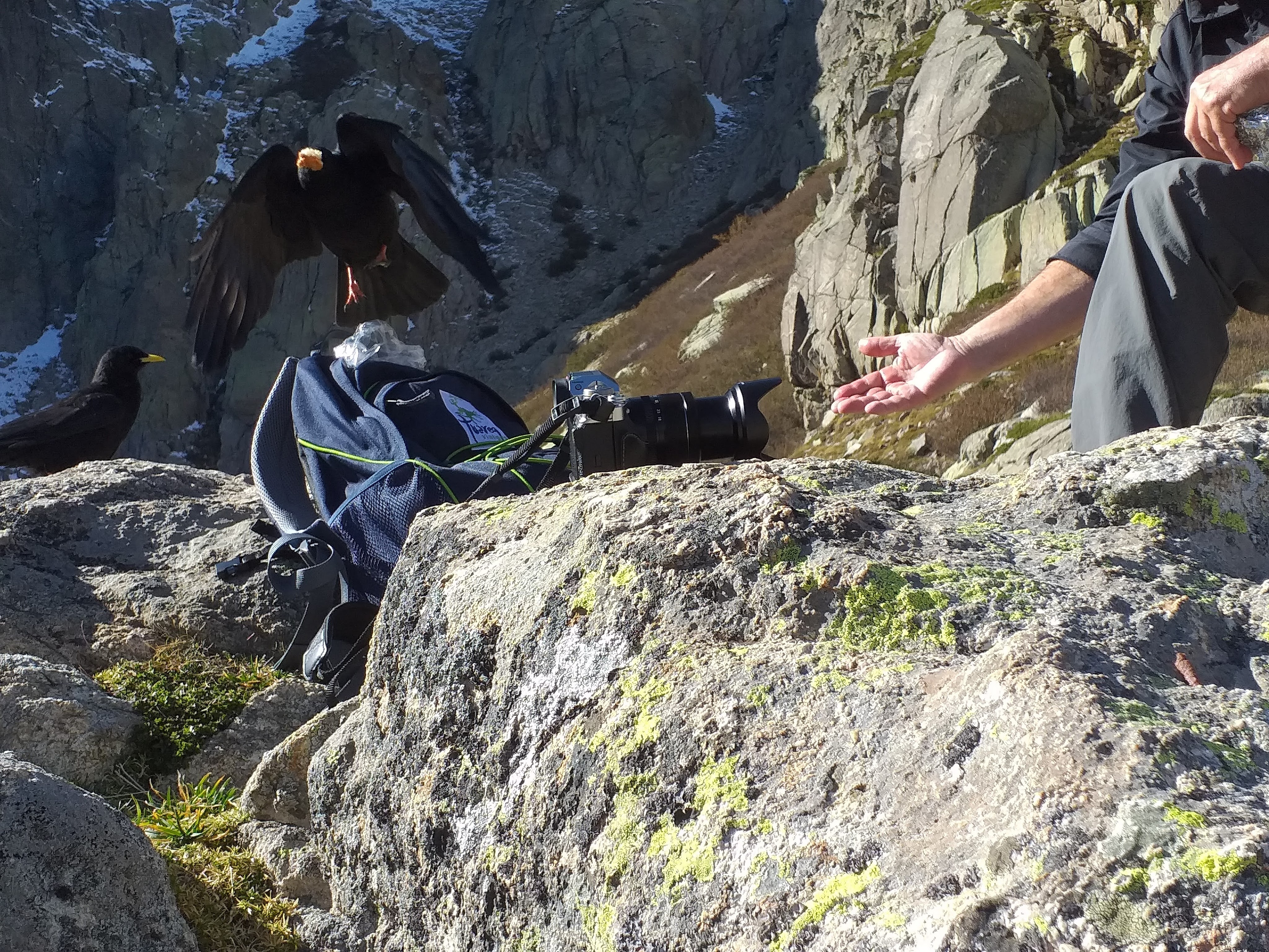 L’aventura del dia ha estat pujar al llac Melu , on hem pogut trepitjar la neu, i hem hagut de pujar a l’ajut de cadenes i pujar i baixar escales pels forts desnivells que hem fet. Encara una mica més amunt, pugem fins al llac Capitellu i dinem al solet en companyia d’unes garses que ens mengen a la ma.