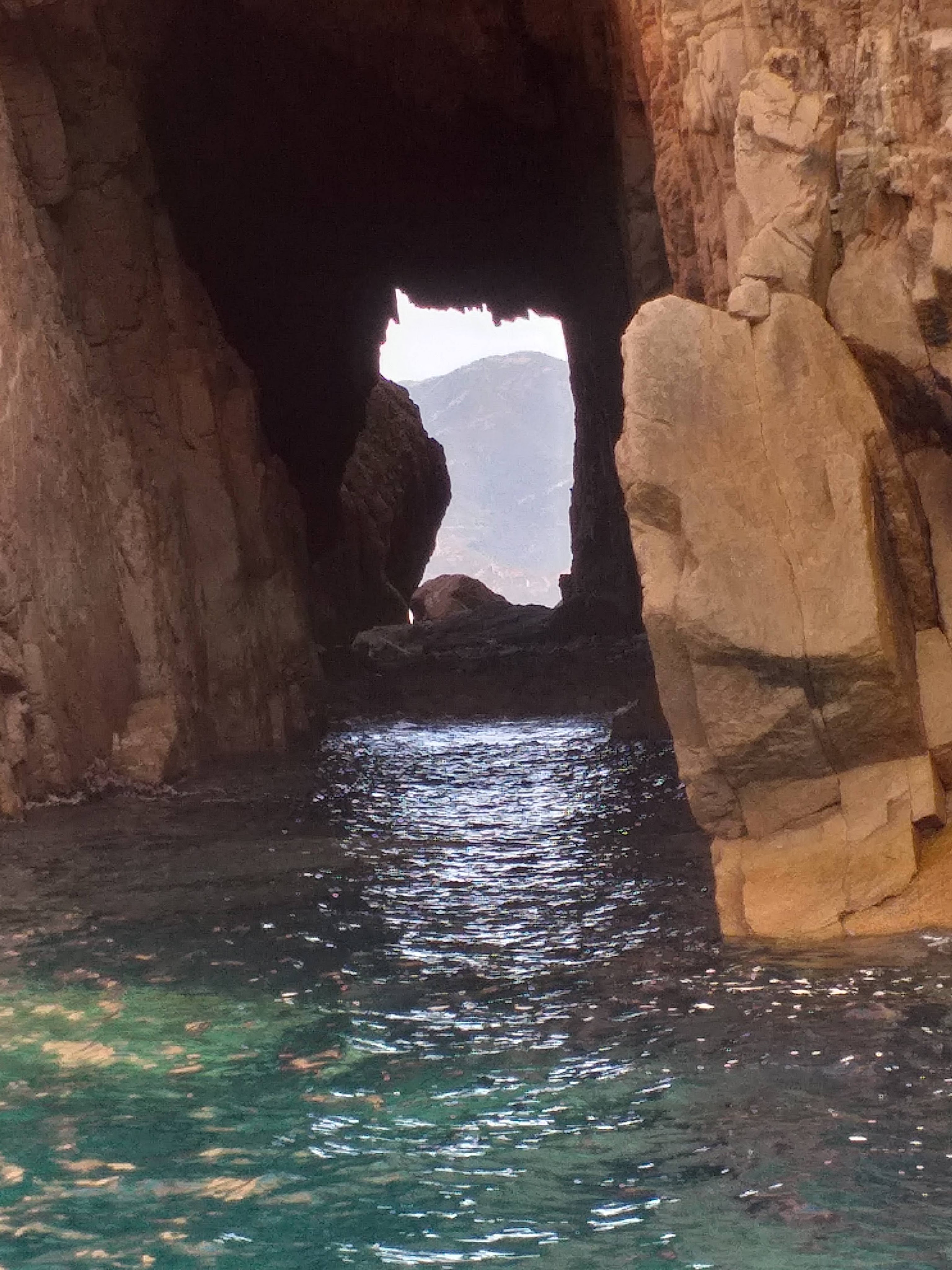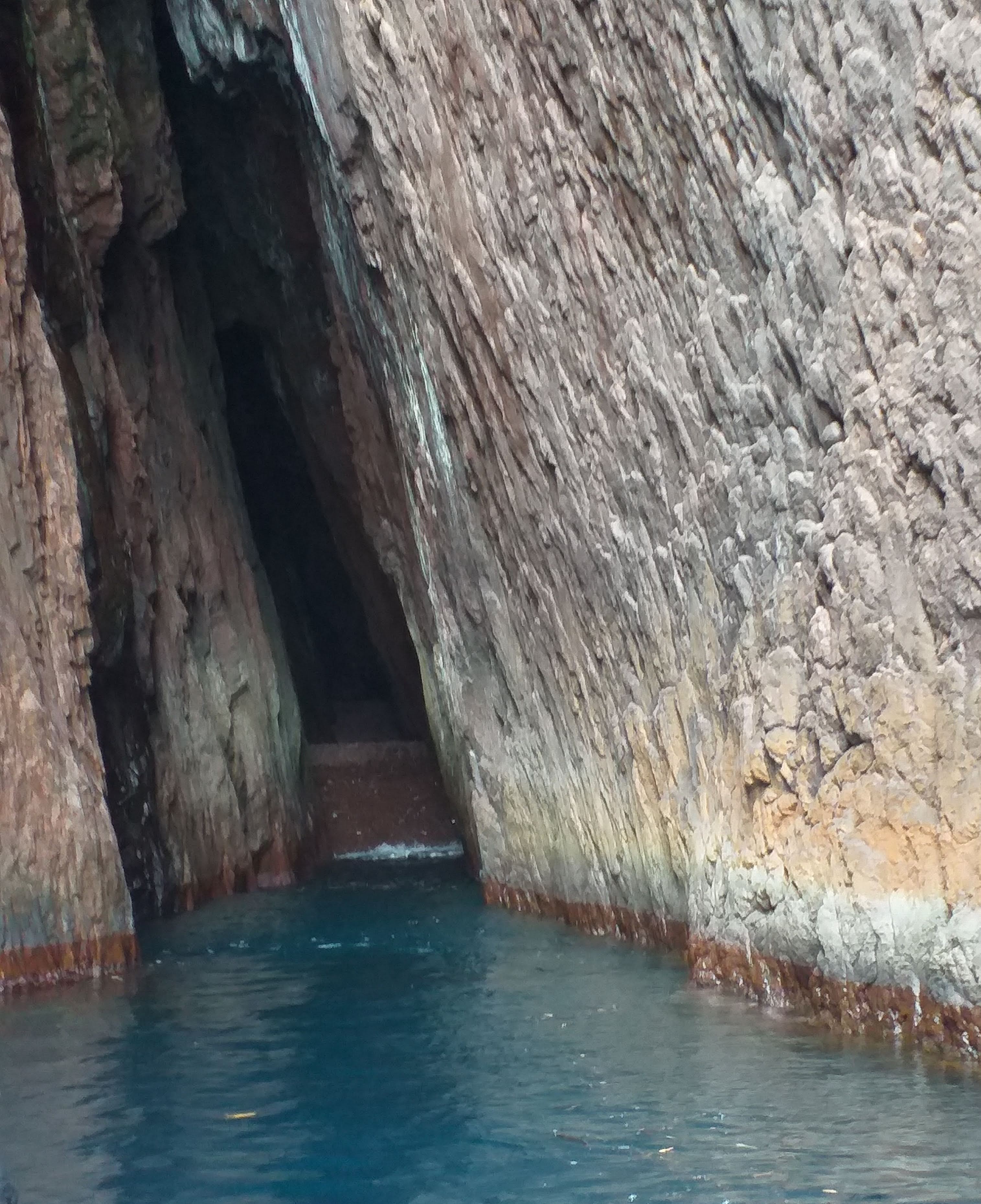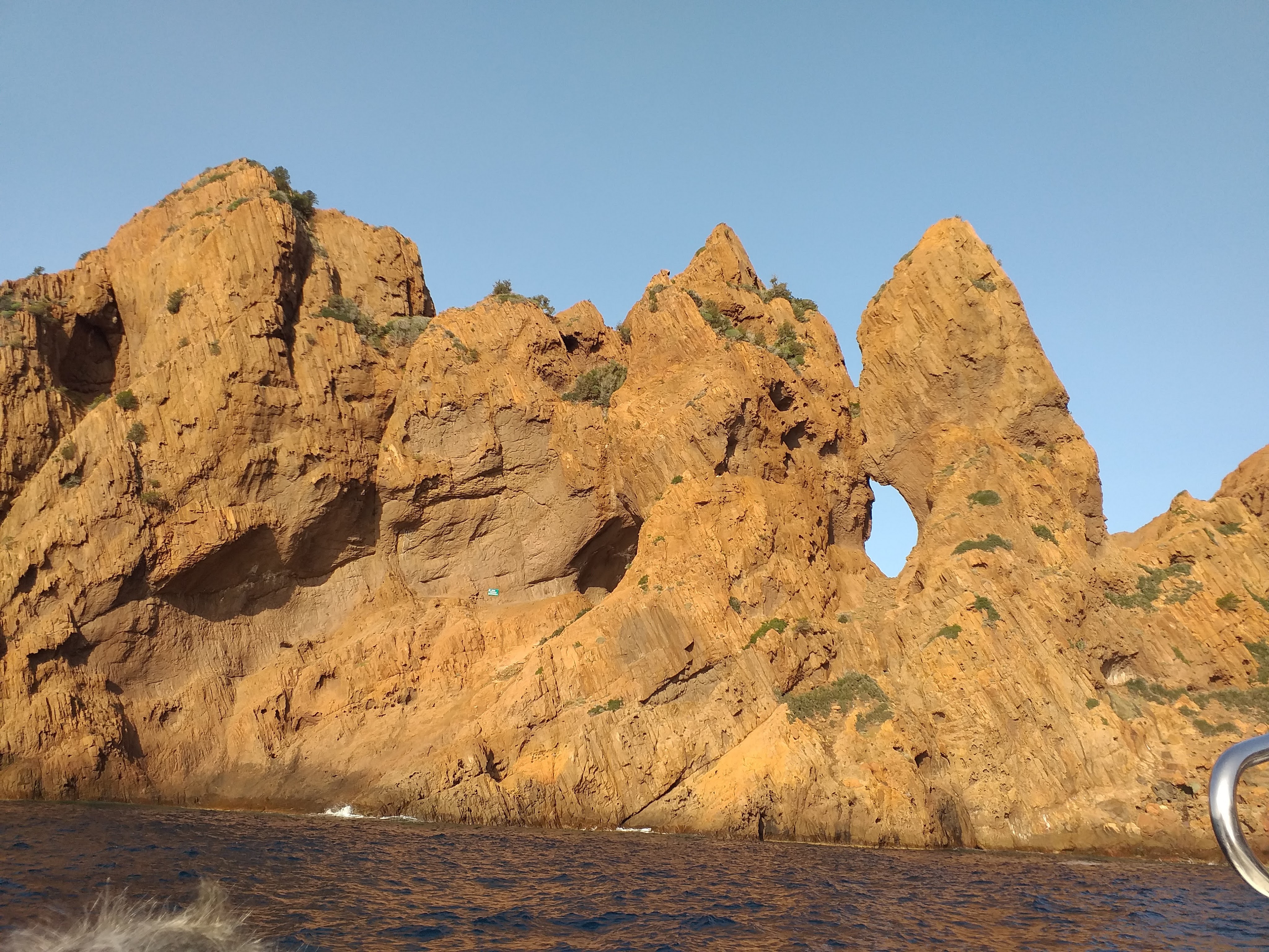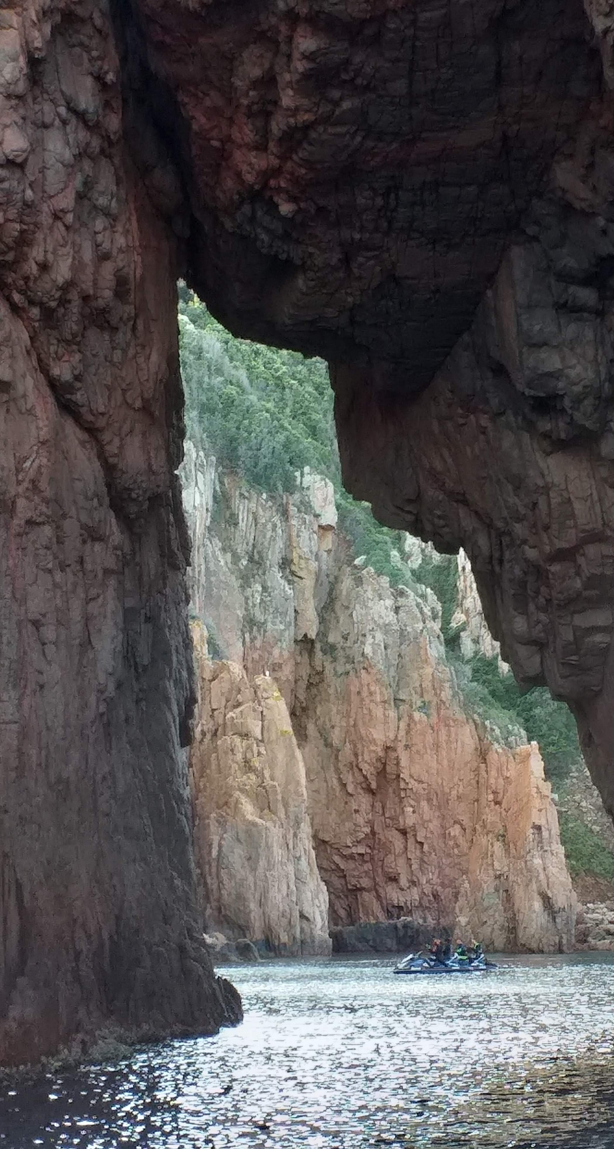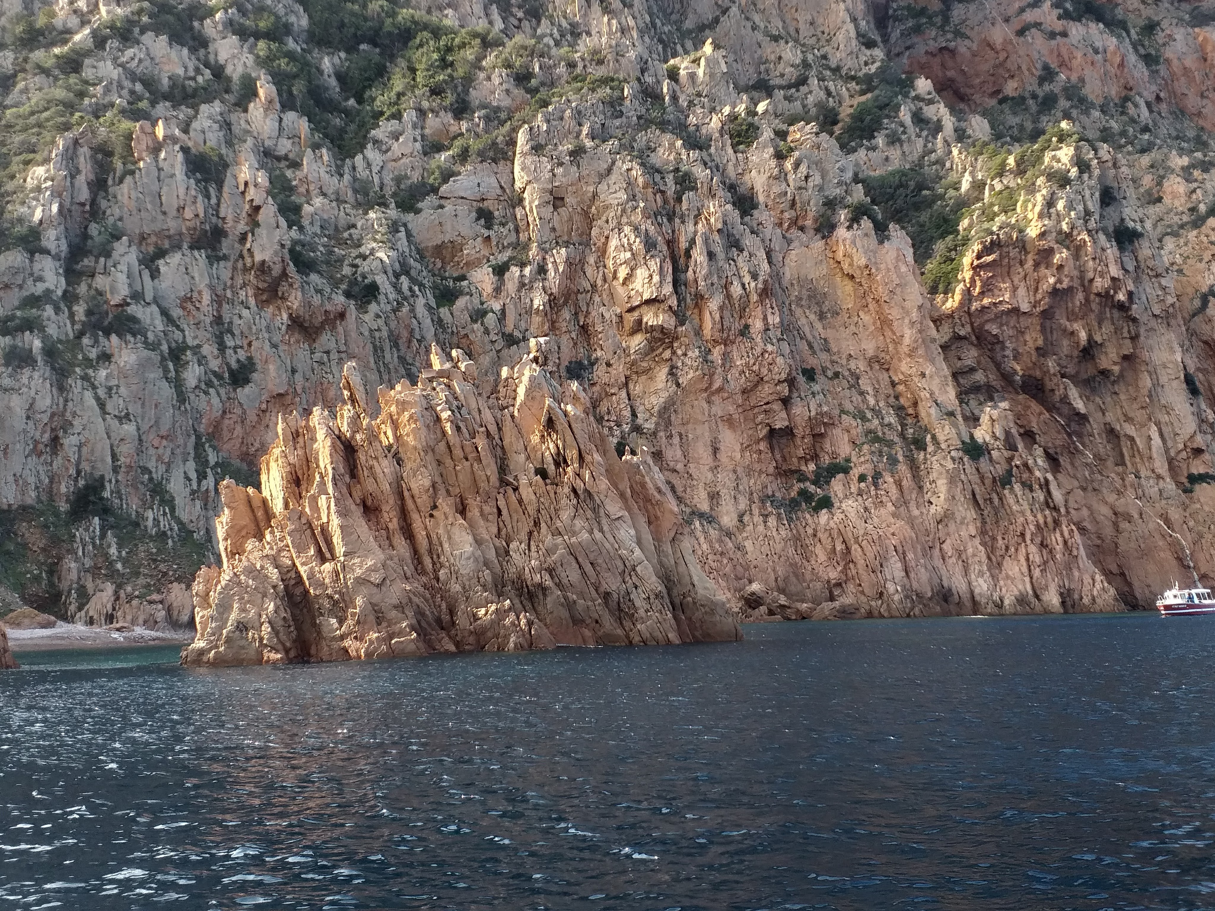 Com que la visita durava 3 hores, ens ha passat de nou pel port i hem recollit a varies persones més, perquè la visita continuava cap a Les Calanques de Piana. Ha estat també molt bonic amb un altre color de pedra, però amb molts recons i coves excavades per la força de l’aigua i del vent. Espectacular.