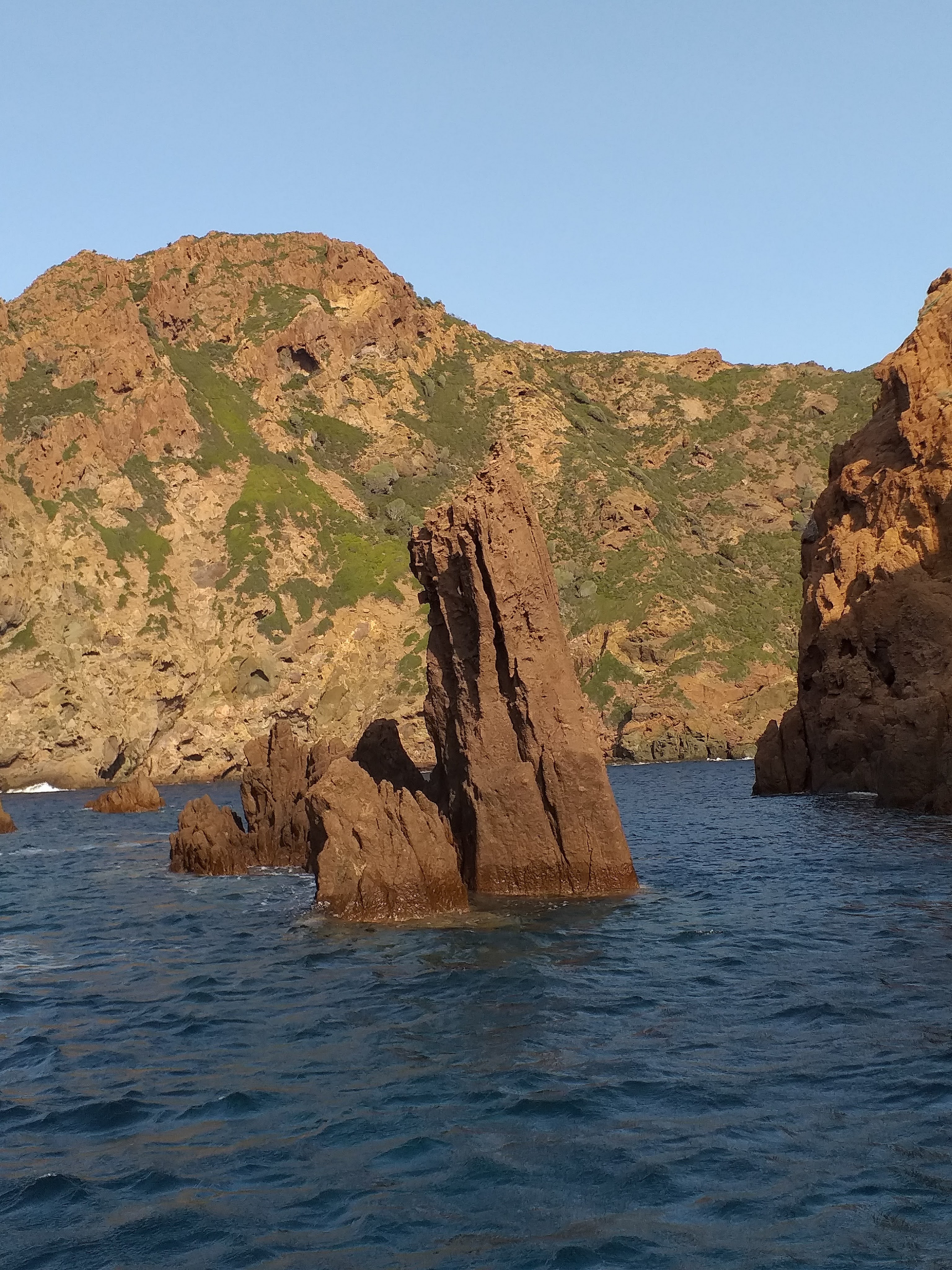 Ens ha fet un ampli recorregut per la Reserva Natural d’Scandola, un plaer per a la vista: terra roja, mar blau fent formes ben estranyes. Magnífic.